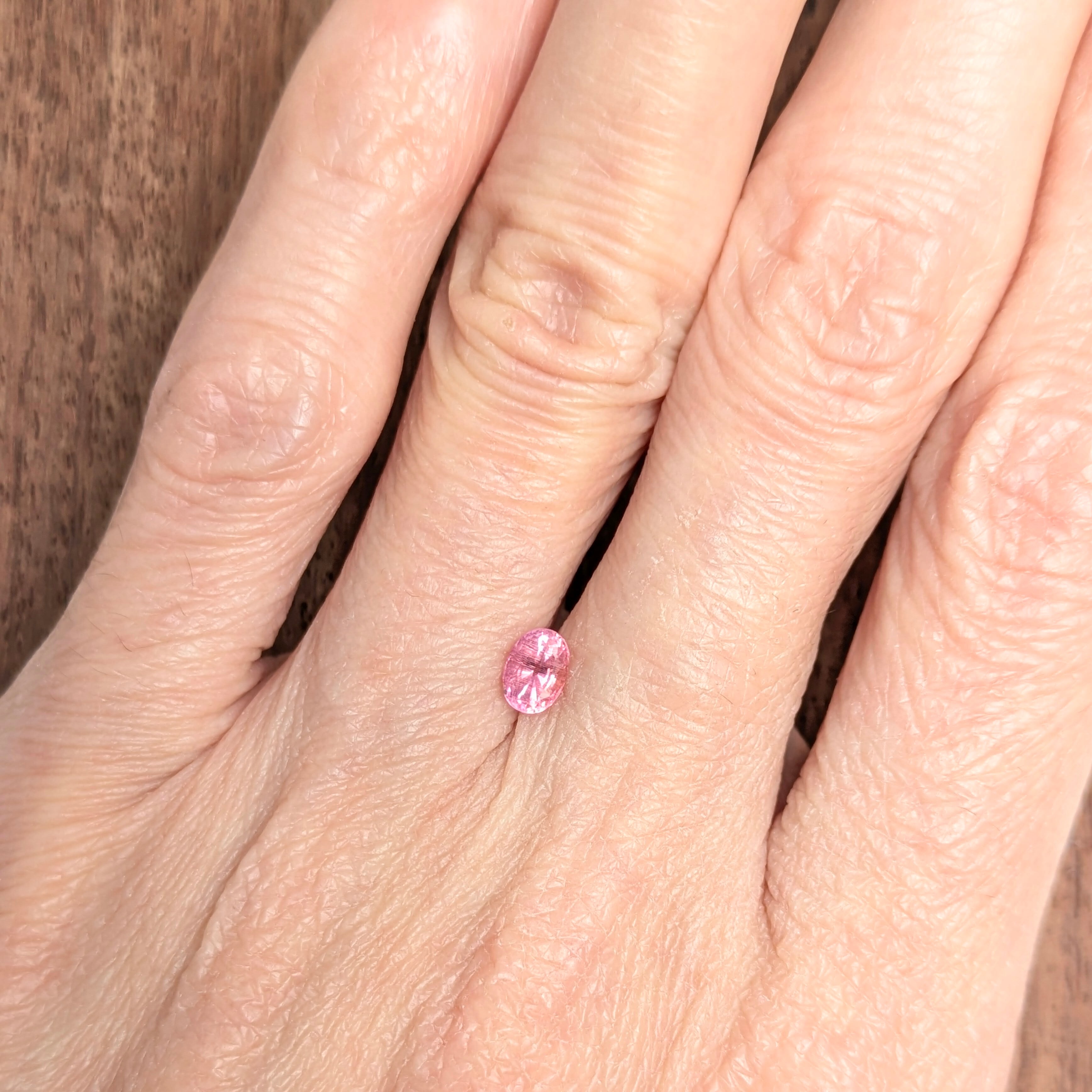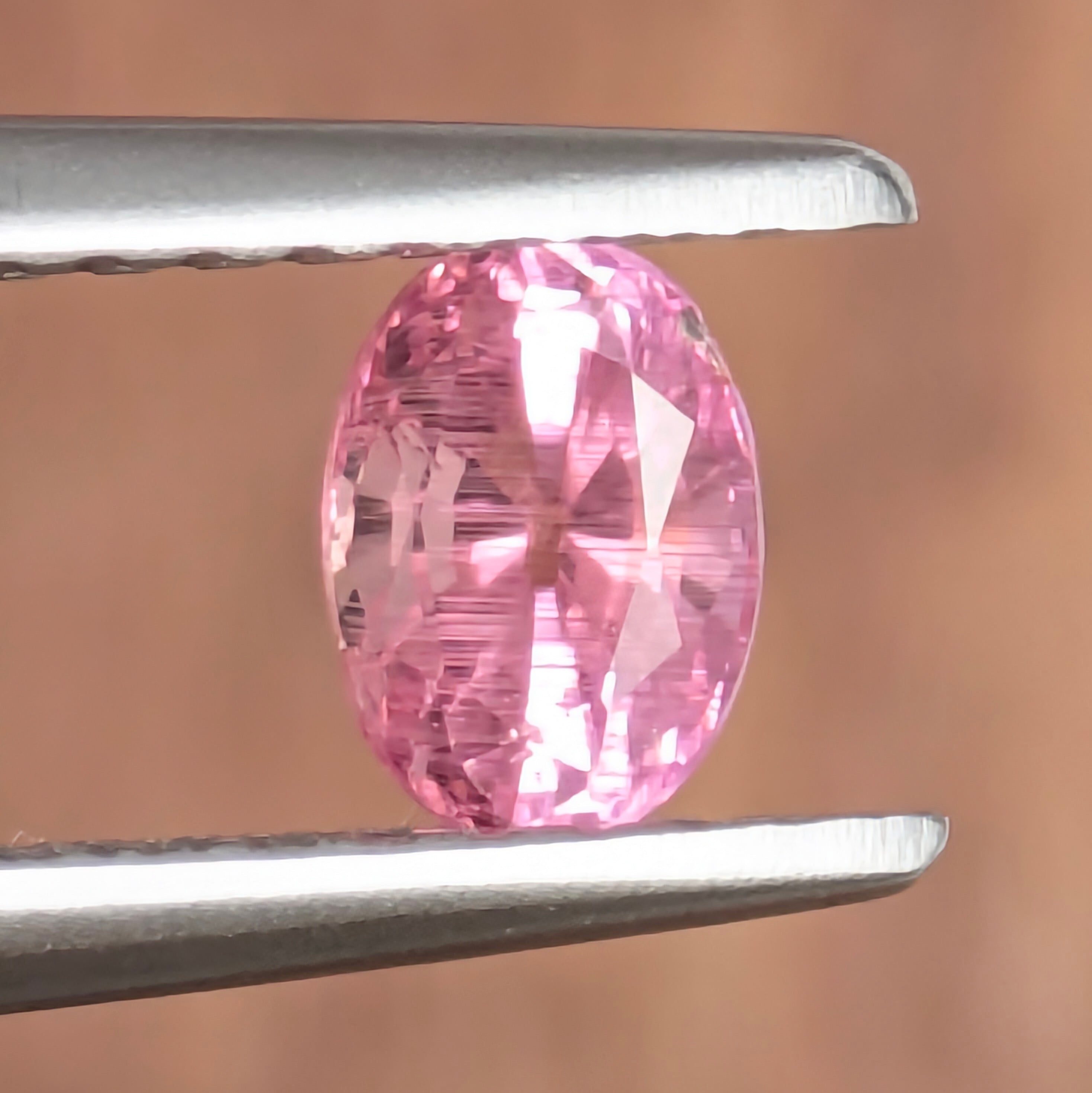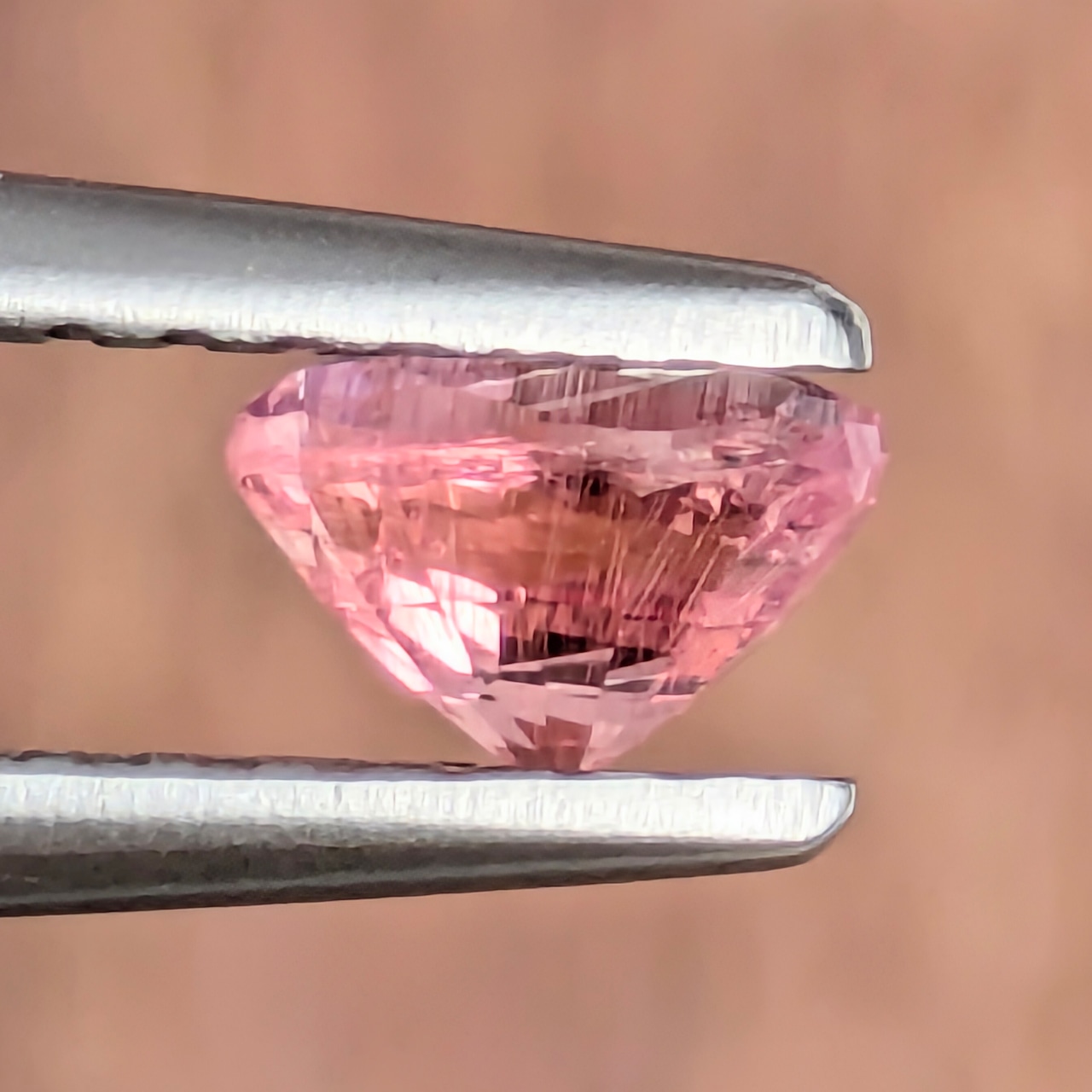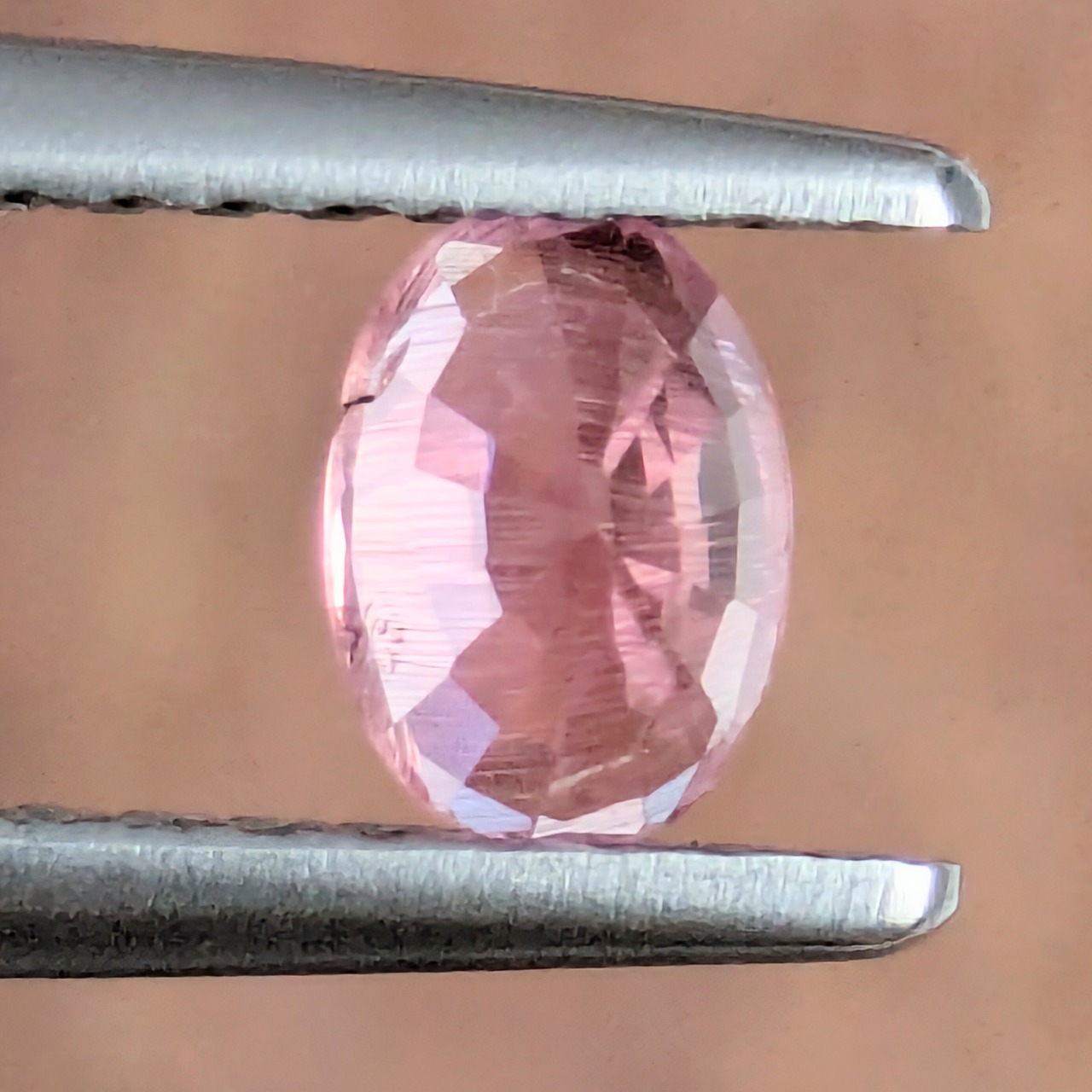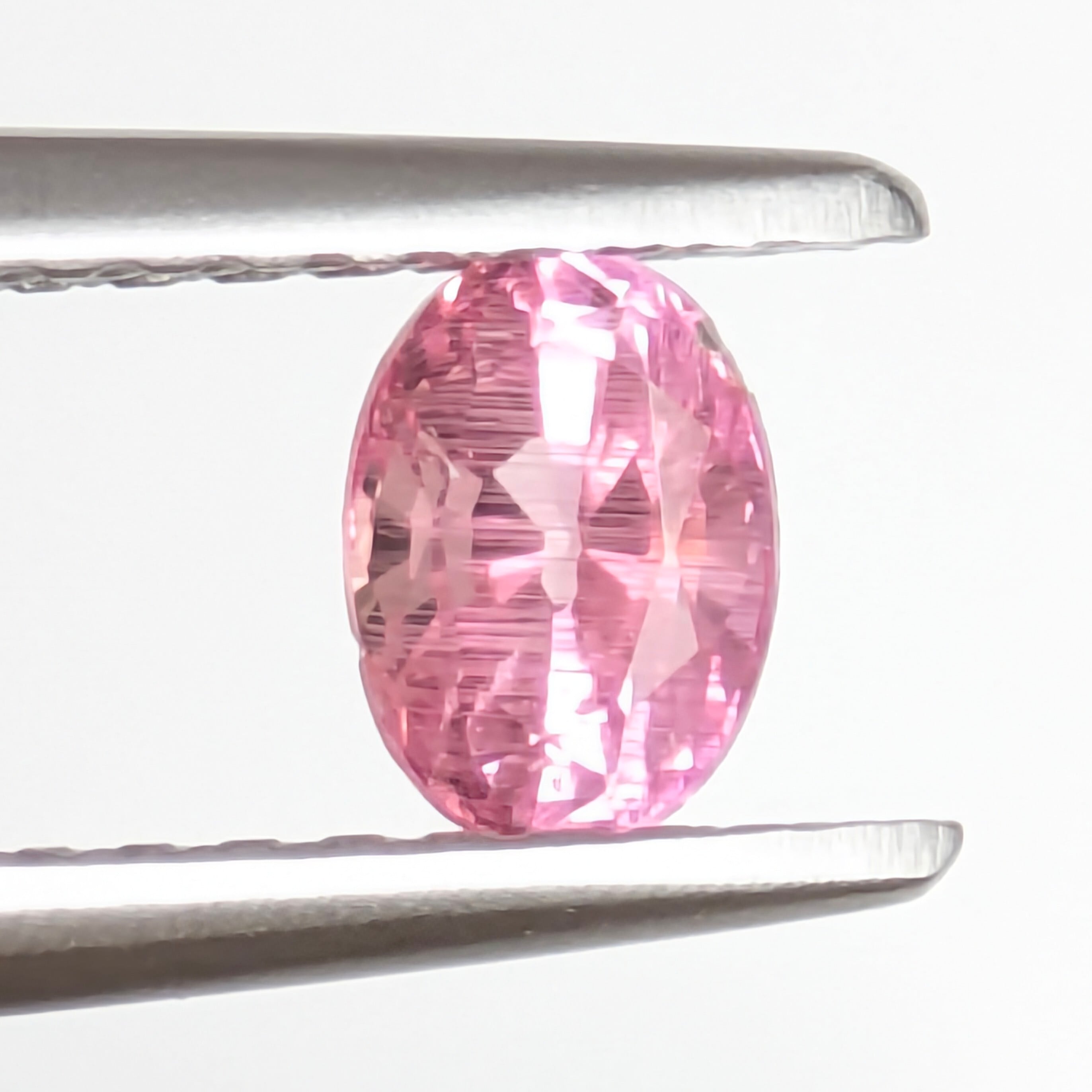 かつては「ラズベリル」という名前で、「ラズベリー色をしたベリル」として登場したペッツォタイト。厳密にはもう少しその組成は複雑で、現在では別の宝石の希少石として人気です。今回ご紹介の1ピースはほんのわずかにオレンジ味をかんだような暖かく優しいピンク色。その内部に煌めくインクルージョンは、まるで夕立のように降り注ぐ美しい針状の内包物で占められています。ペツォッタイトのなかでは、かなりテリも良い1ピースです。