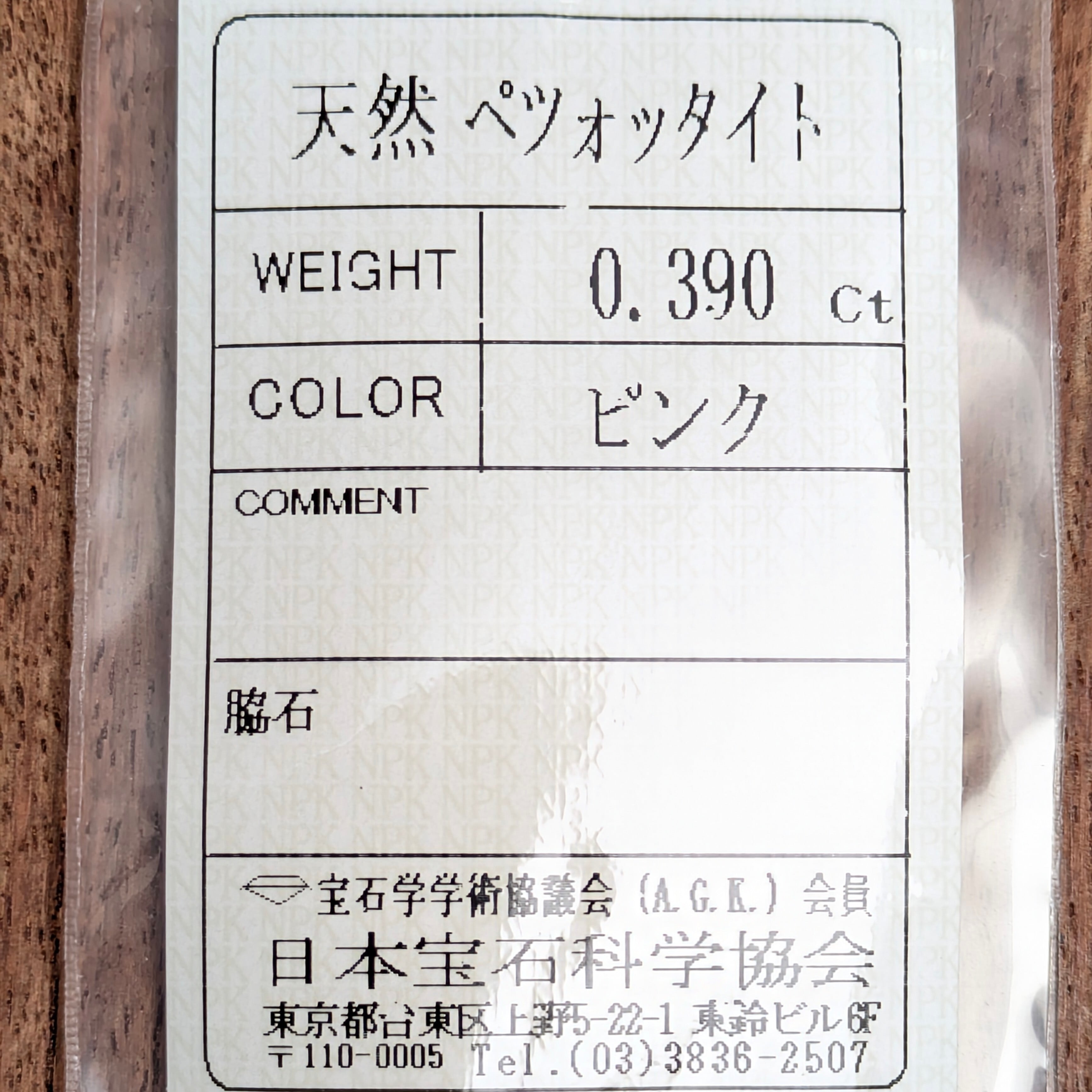 ソーティング袋は業者間取引に使用される簡易レポートですので、傷んでいる場合もございます。別途料金で鑑別書を作成する事も出来ますのでご検討ください。