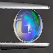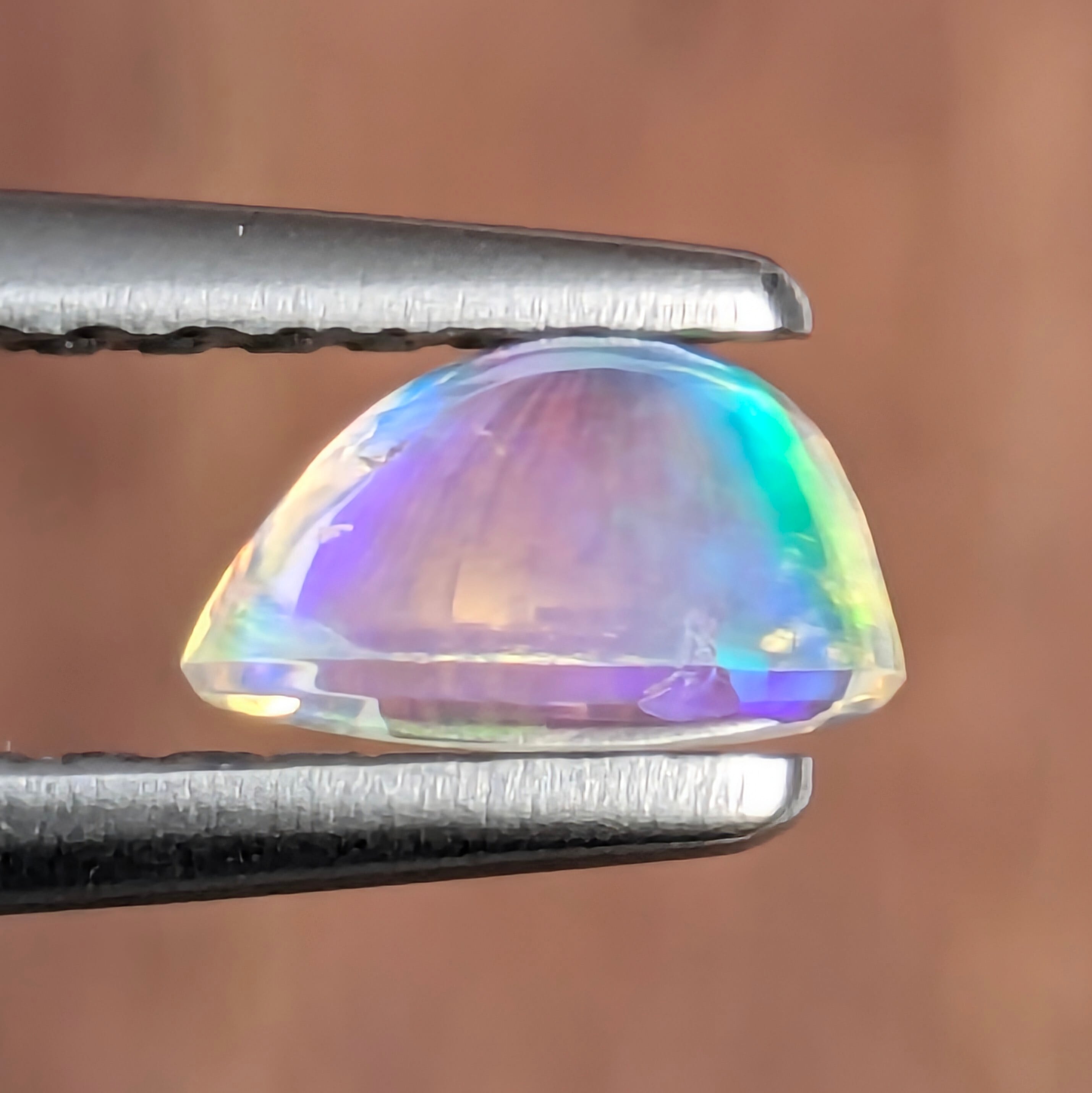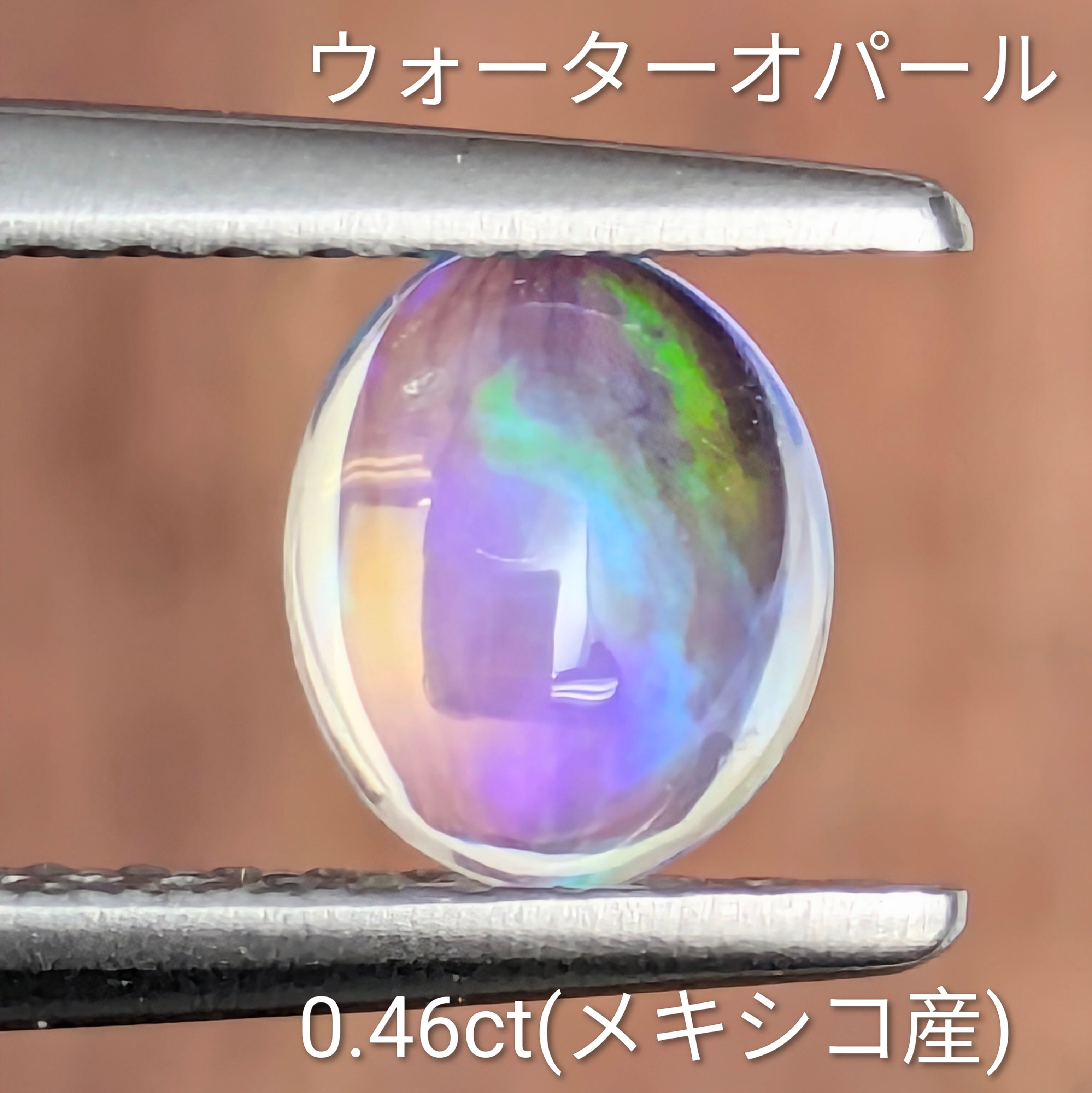 「ウォーターオパール」とは言い得て妙。まさに【水がオパール化】したかのような、極上の透明感と美しい七色が楽しめる1ピースです。裏面の端の方にちょっとだけ欠けのようなものがありますが、肉眼でその美しさを妨げるようなものではありません。ジュエリーに加工してももちろん美しいですが、ここまでの透明感と裏面からも確認できる遊色は、しばらくルースであらゆる方向から愛でたいと思わせる1ピースです。