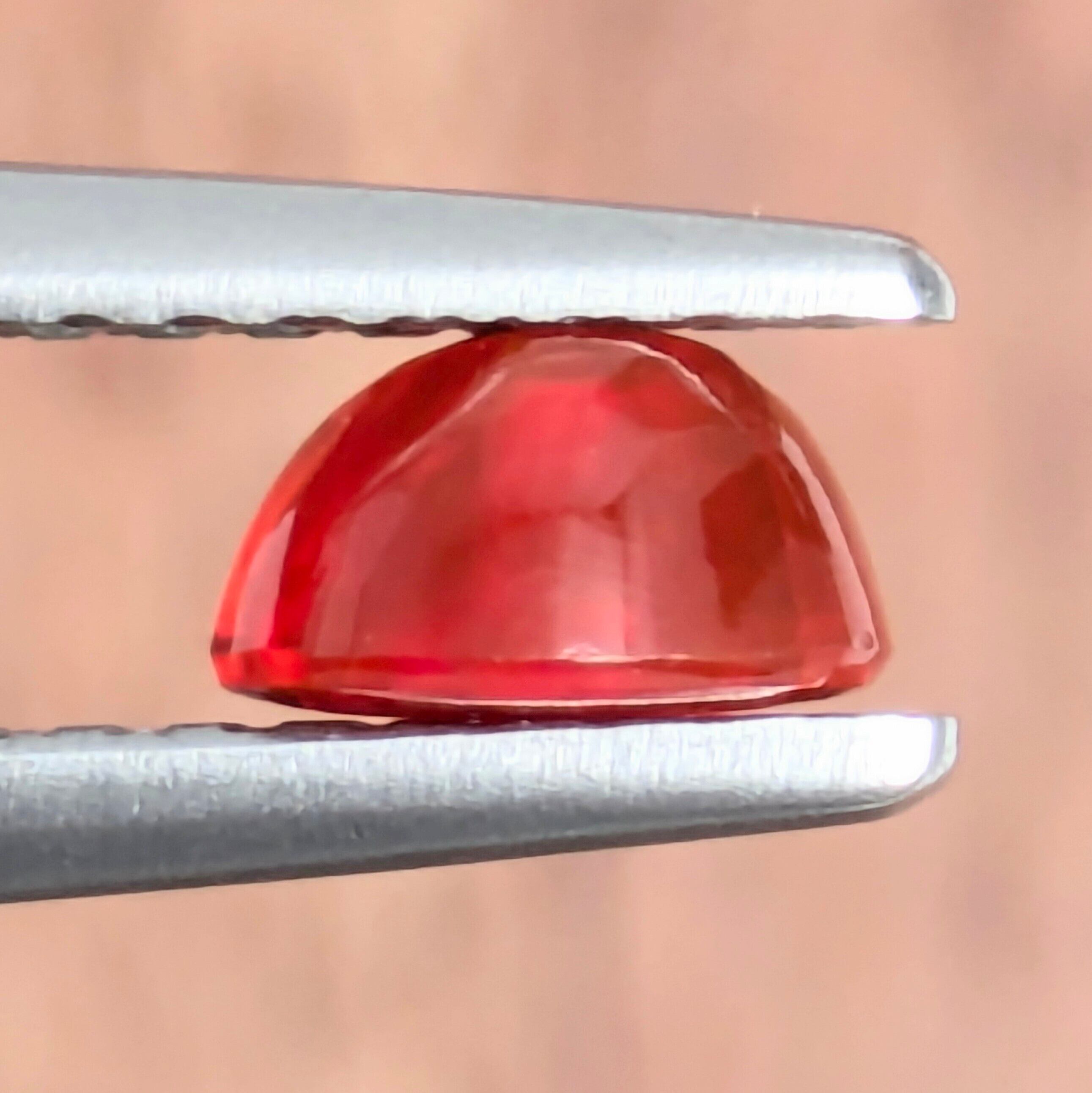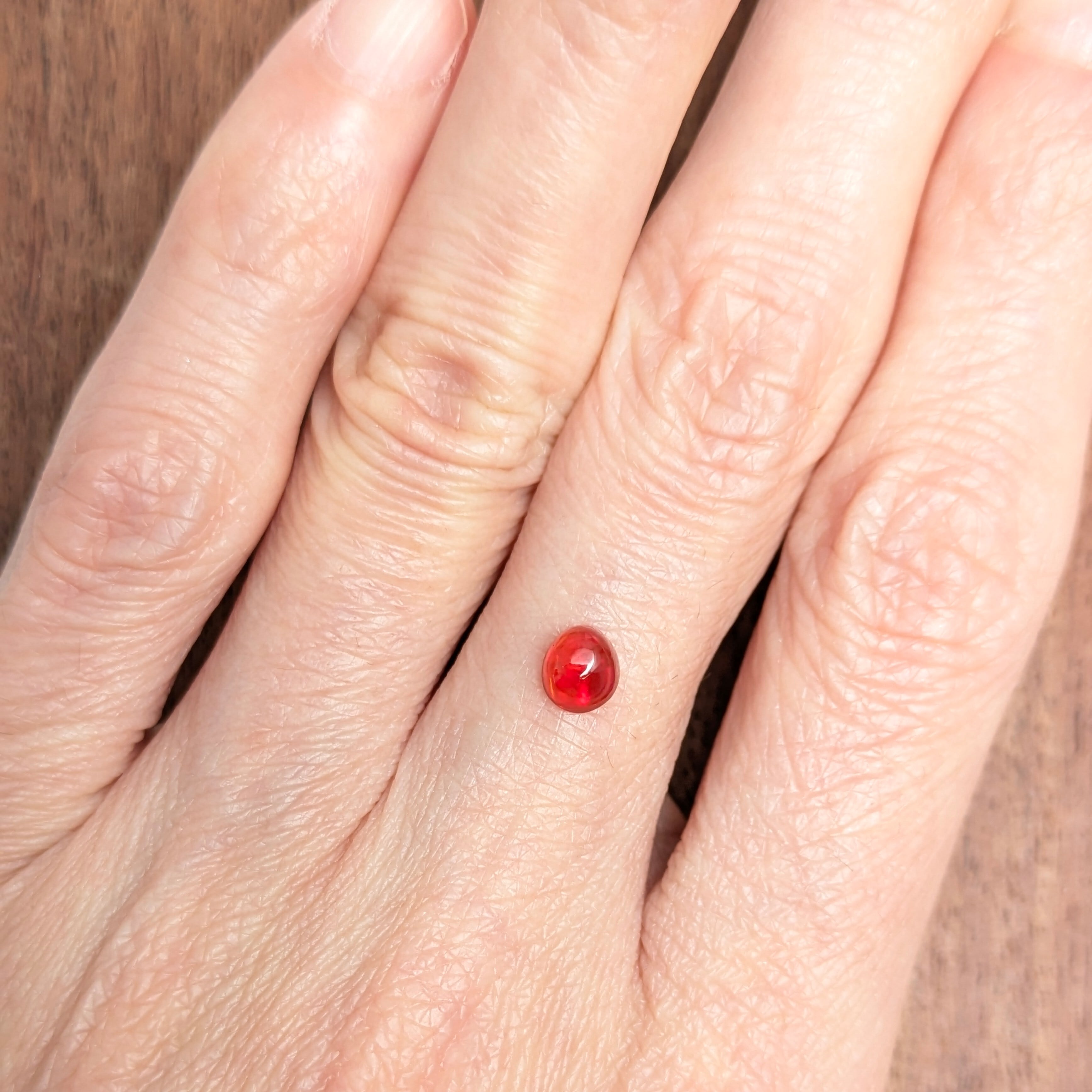 画像ですとちょっといまいち上手く写っていないのですが、実物はとても濃厚なオレンジ色の中に、燃える炎のような赤色とオレンジ色の揺らめき、そこに差し色のようにイエローとグリーンの遊色がチラチラと燃えている1ピース。誰が最初にこのオパールに「ファイア」という冠を付けようと思ったのか・・・まさに、小さな炎の結晶のようにその姿をひと時も留めない、変化が美しい宝石。その遊色の揺らめきは、太古から現代への囁きかけのように、微かなようで確かなものです。