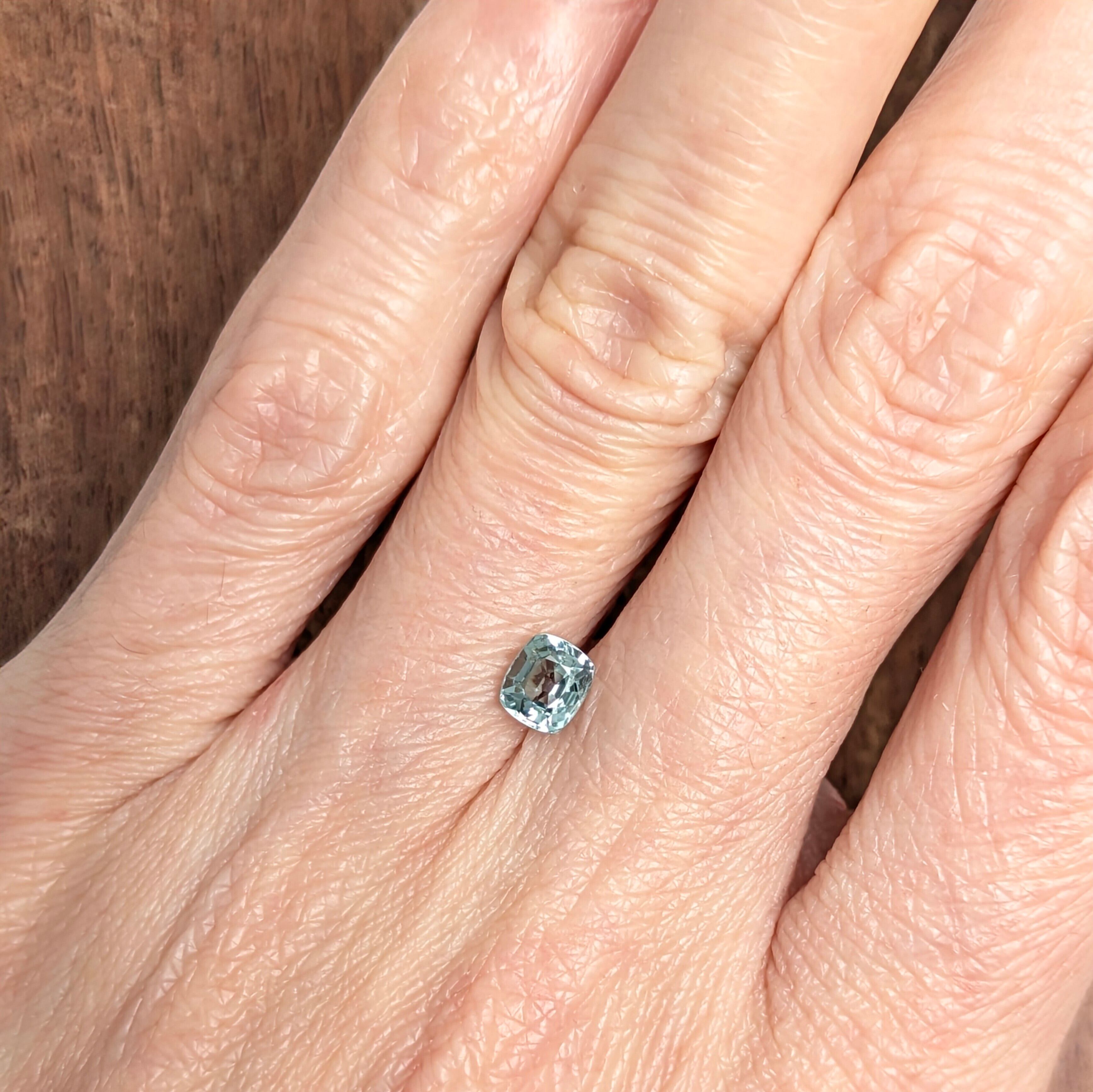 グリーン系の宝石は、夏の新緑や春の新芽などの森の美しさを思わせるものが多いですが、今回のグリーンサファイアは例えるなら『南の島を囲う海』。その色は空の青と海中の色とりどりの生き物たちの色を反映した複雑な緑色。そっと石の内部を覗くと、非加熱ならではの細かなシルクインクルージョンがうっすらと確認出来て、それすらも海に生きるサンゴの呼吸やプランクトンたちの戯れのよう。淡い色合いですが、とても神秘的な色と輝きの1ピースです。