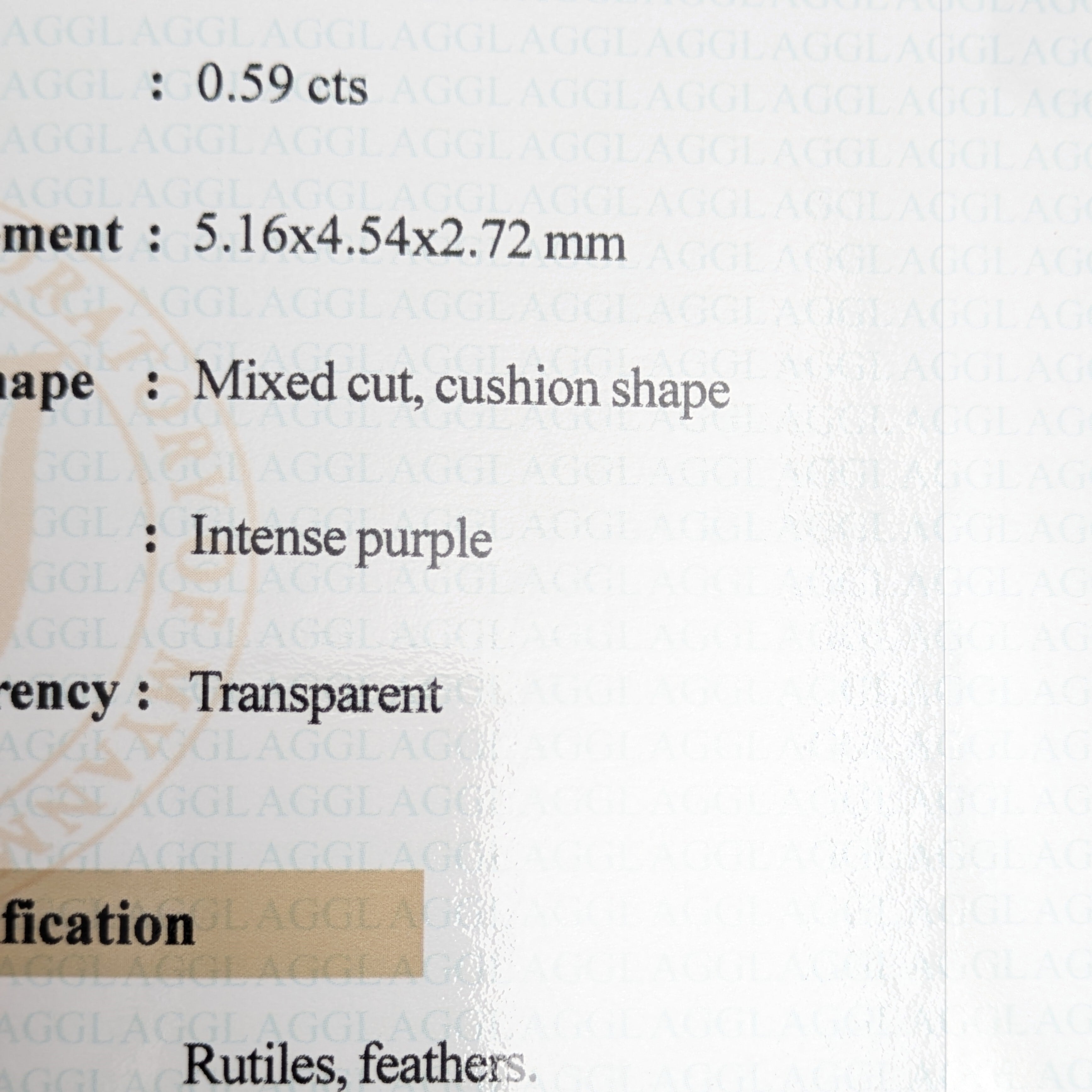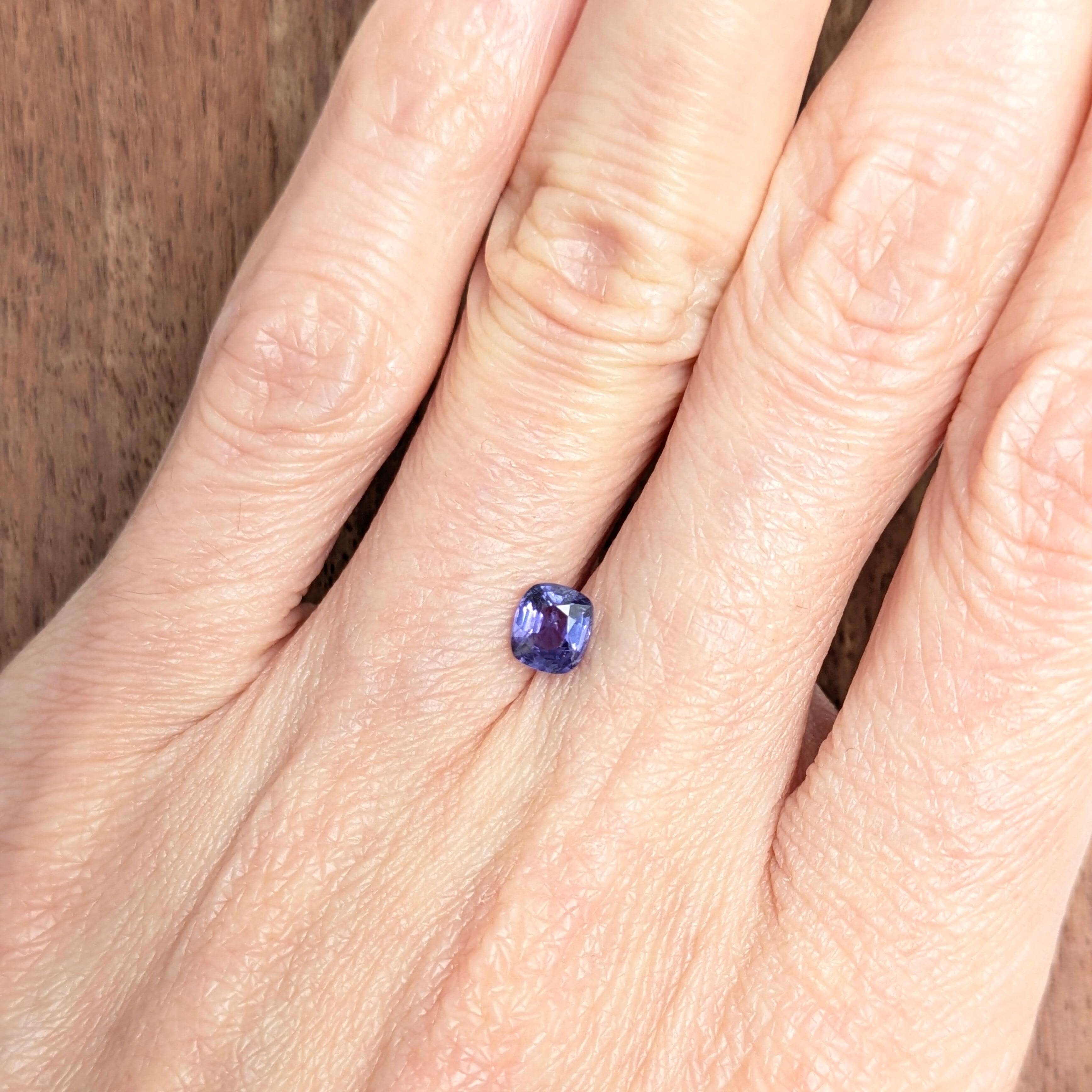 青色と赤色の間のような、昼と夜の狭間のような、複雑な色の混ざり合いがとても美しい1ピース。鑑別書上のカラーグレードは「インテンス パープル」ですが、よくよく拡大して覗き込むと非加熱ならではの【色の揺らぎの美しさ】を感じるサファイアです。高貴な紫色にふさわしい、サファイアの高い輝き。その中に、わずかに夢見るようなシルキーな風合いもプラスされて、とても美しい幻想的な1ピースになっています。
