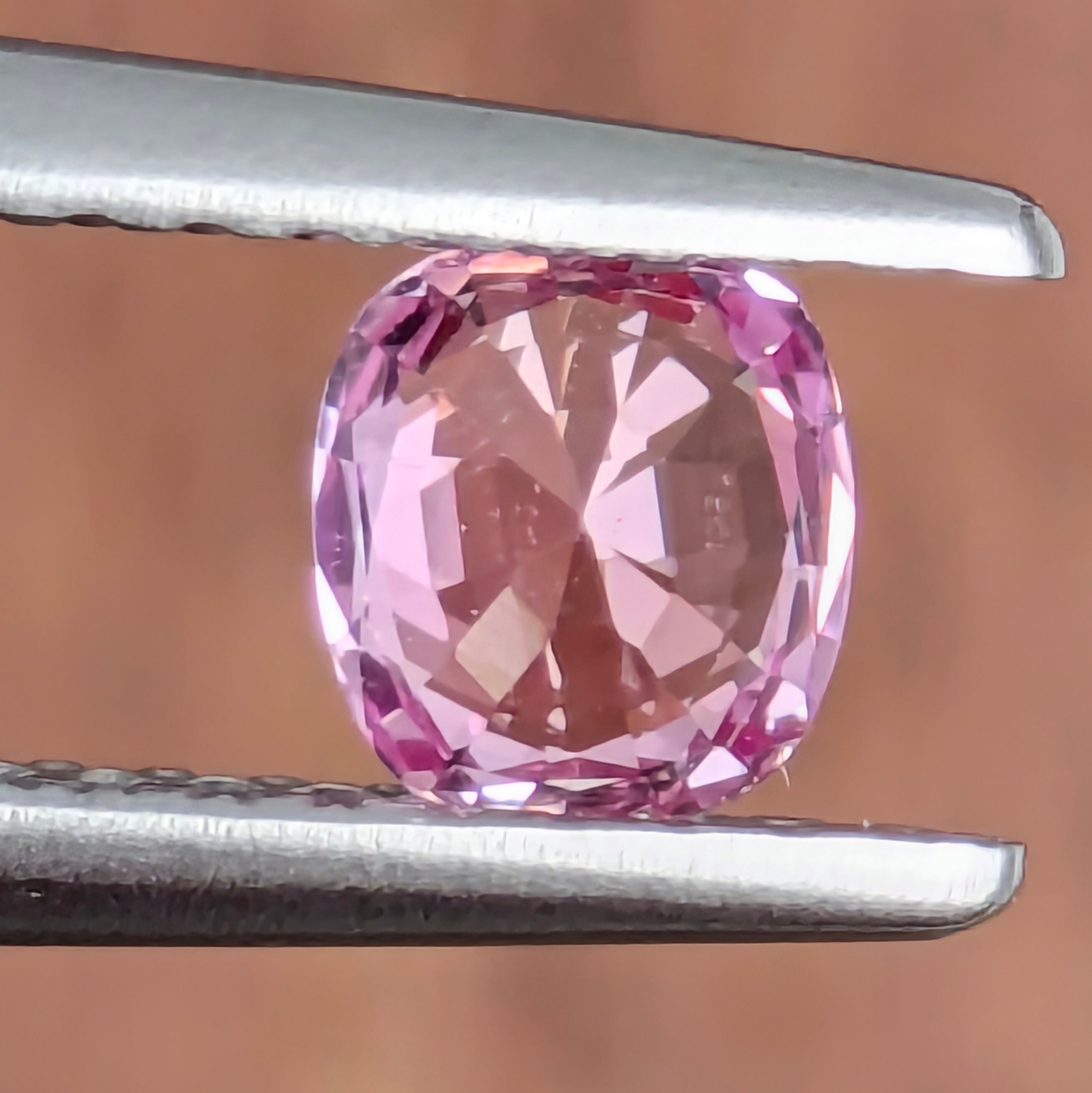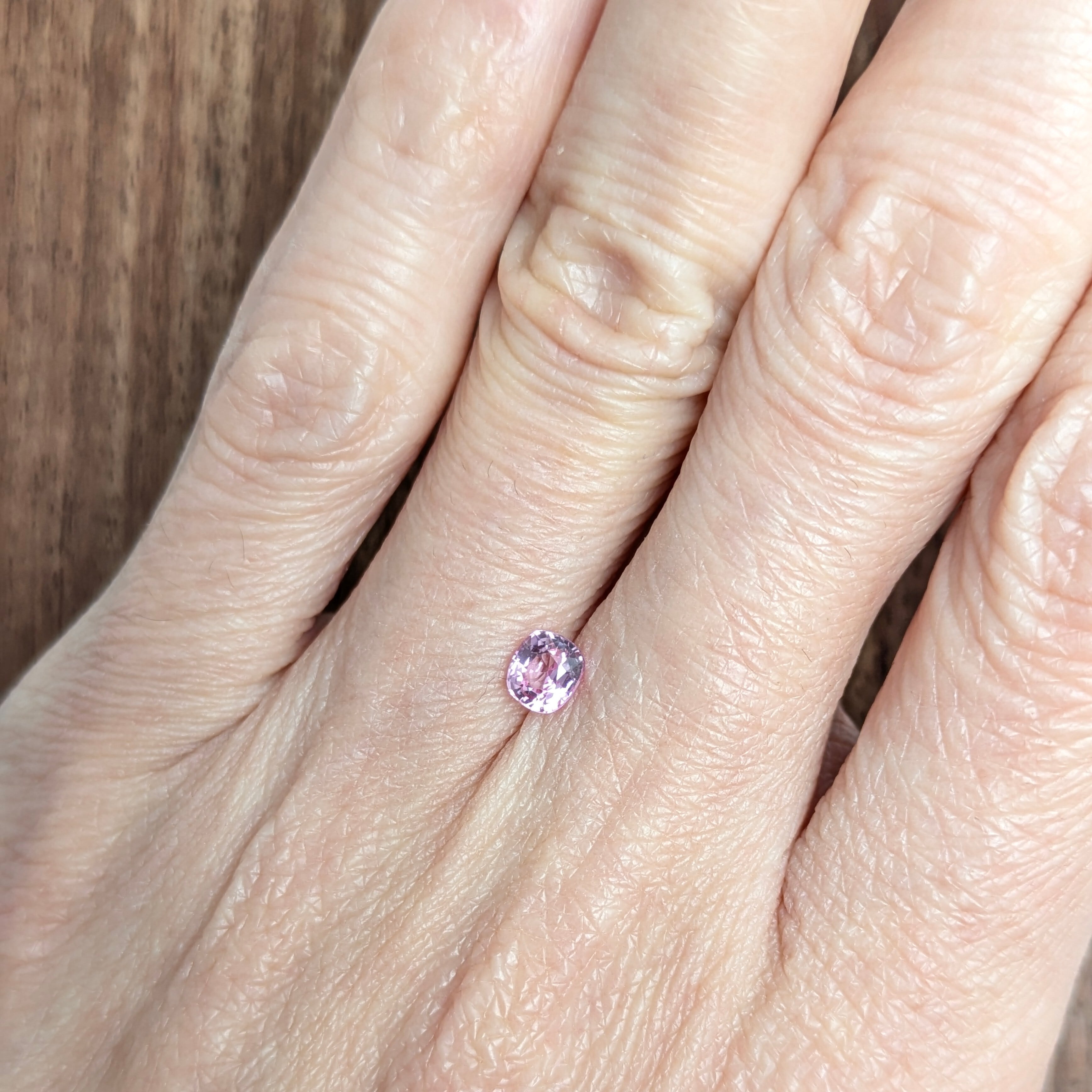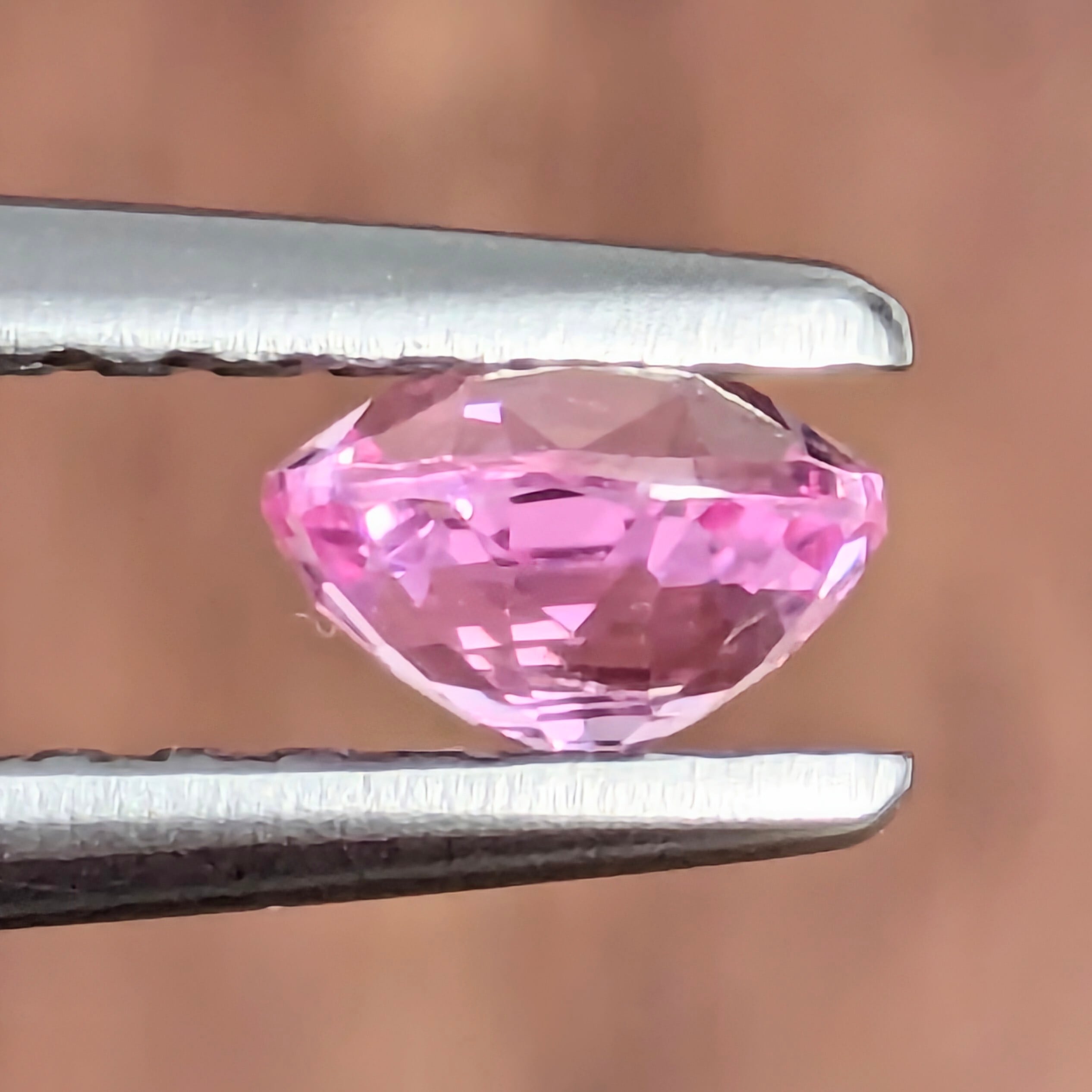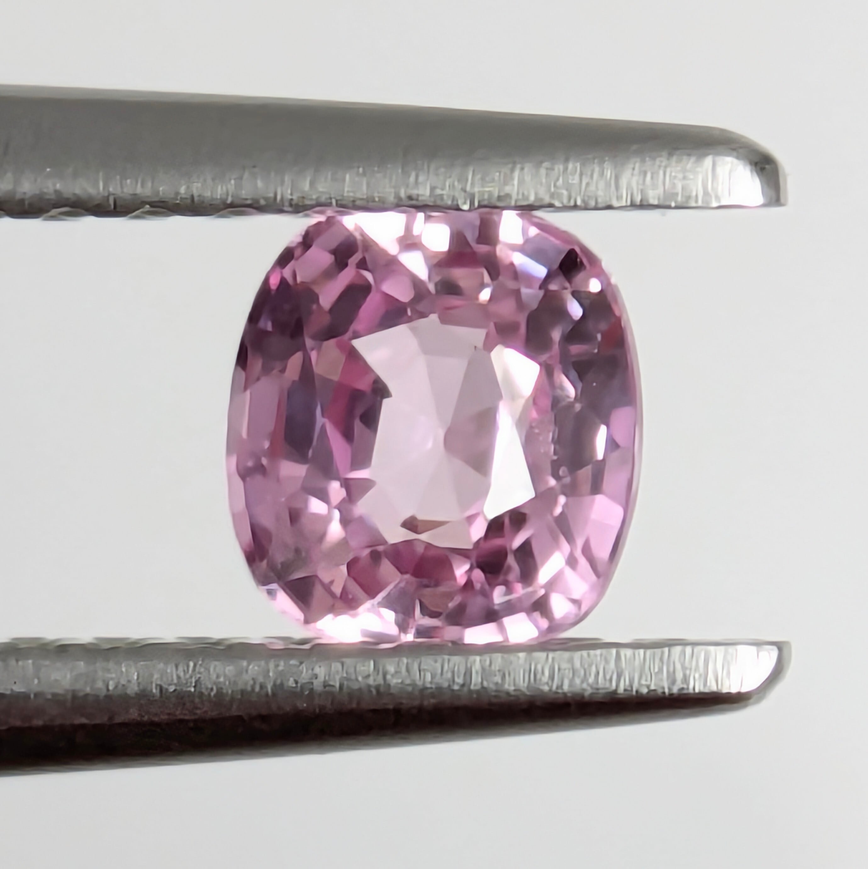 高い透明度を保ちながらも、非加熱特有の羽衣のような薄い薄いベールをまとったようなシルキーで可憐な1ピース。明るいピンクに僅かにパープリッシュのかんだすっきりとした色合いです。