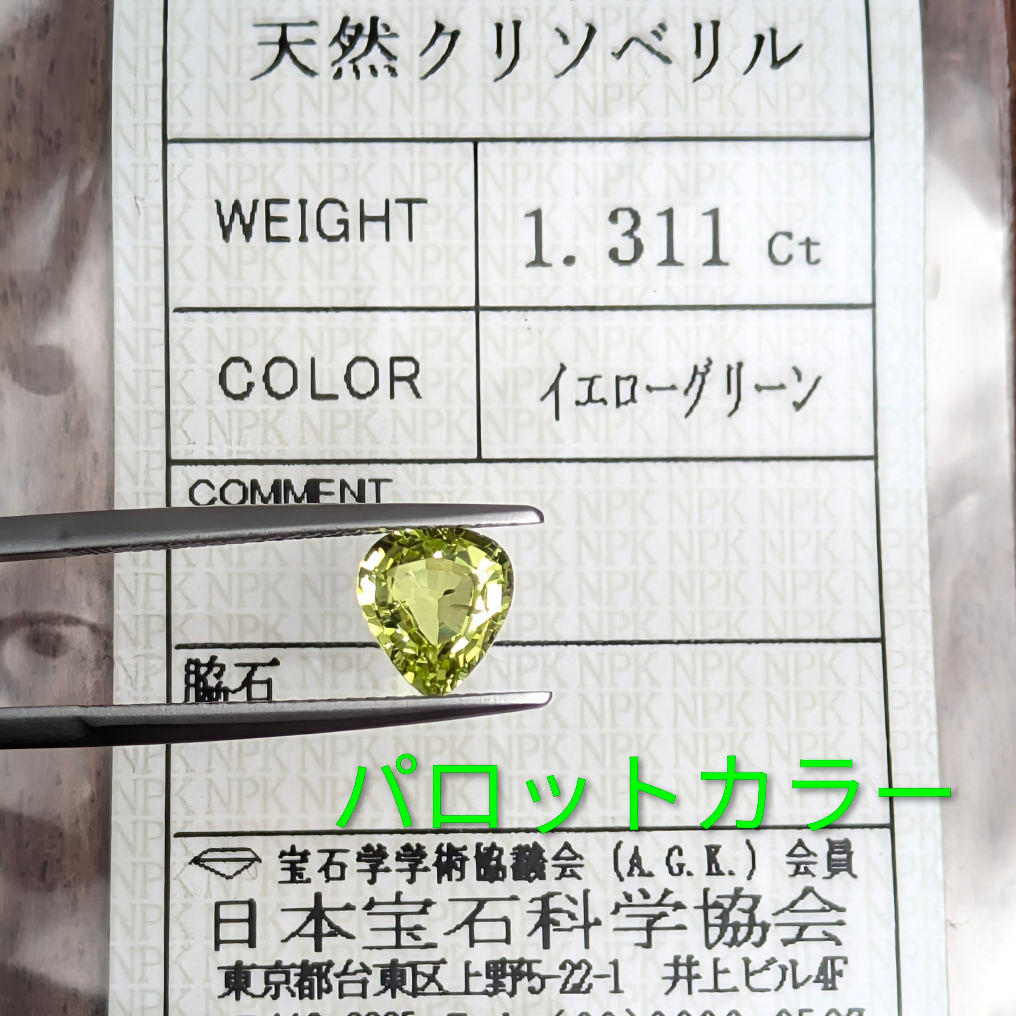 クリソベリル(パロットカラー)ルース【1.311ct】 PRO207964