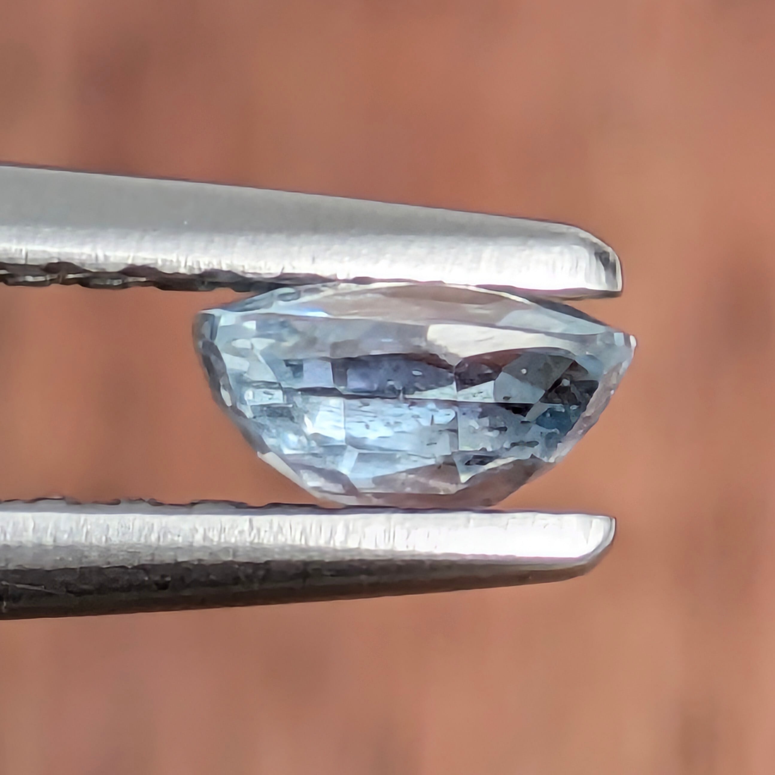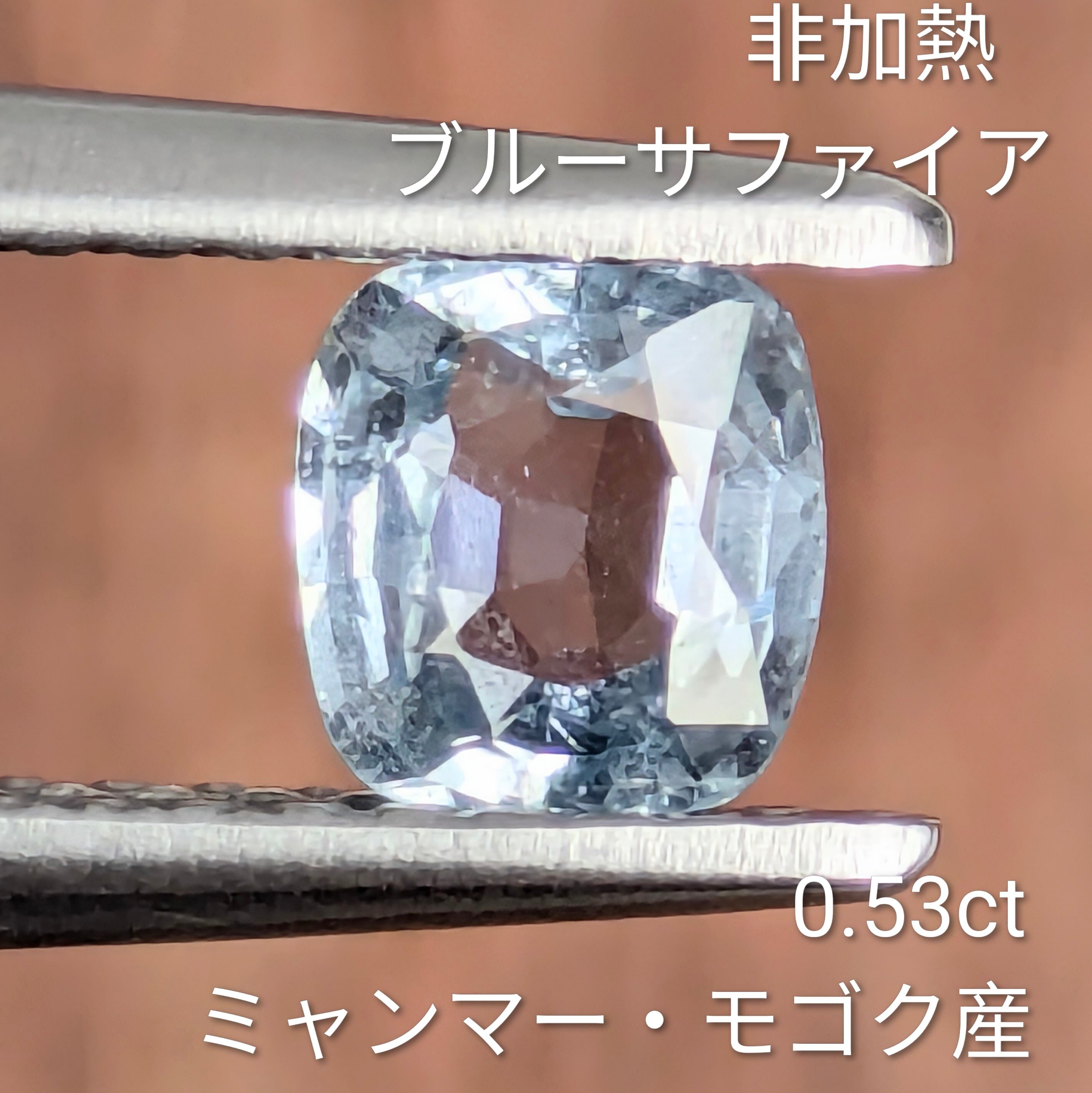 今回のこの非加熱のブルーは、冷ややかな氷や冷たい雨の色ではありません。ちょうど今の季節、春の訪れとともに生き物たちの吐息も混ざりつつ煌めく、暖かな通り雨・・・。そんな、『柔らかさ』を感じるサファイアです。通常は色の調整のために加熱されることの多いサファイアですが、「足並みのそろった均質な色合いがベスト」とは限りません。宝石の魅力の一つは、【イレギュラーな個性】に現れると思います。