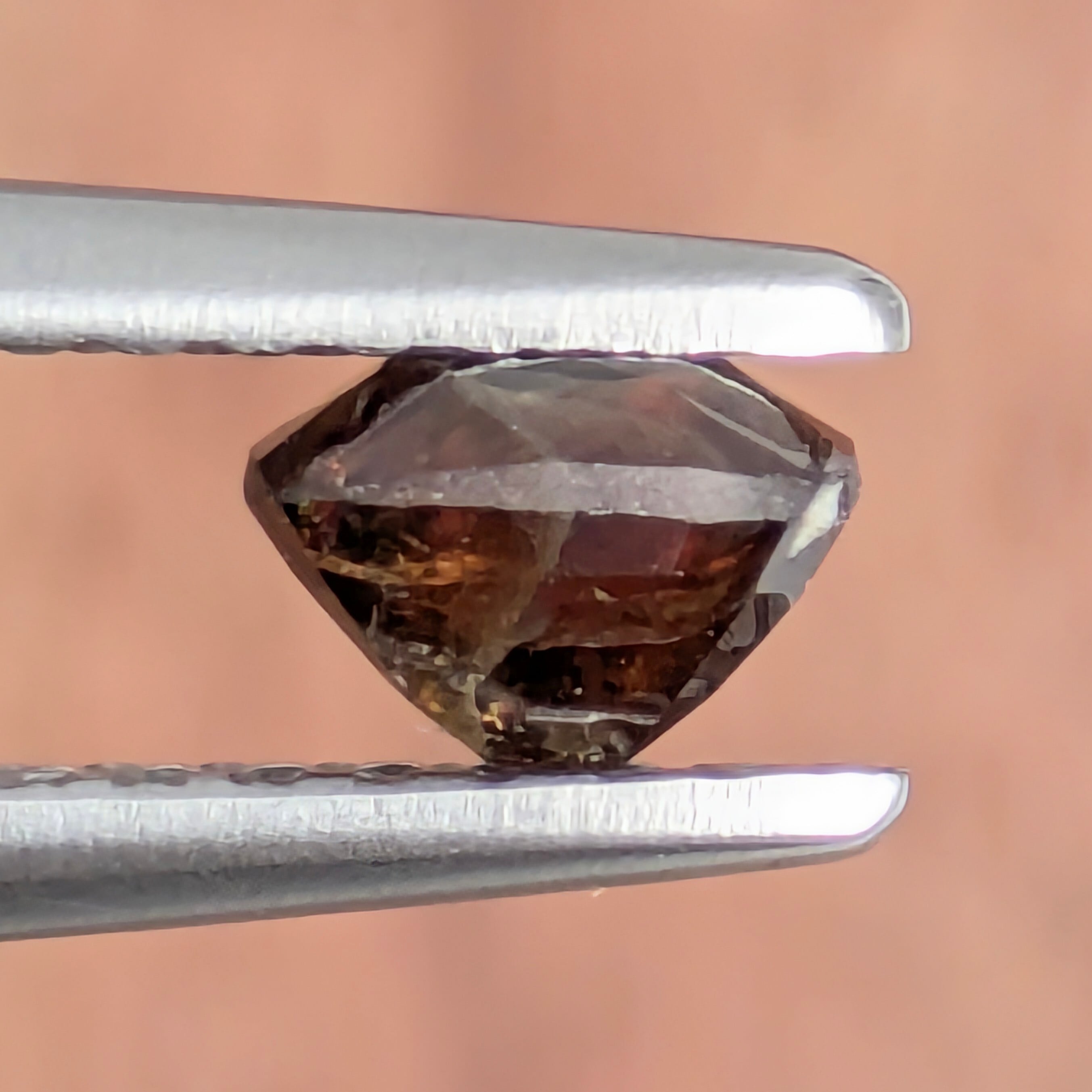 このペイナイトを見た第一印象は、「三つ揃えのオシャレなスーツを着た紳士」。その色合いなのか、カットのせいなのか、佇まいから醸し出される雰囲気なのか・・・。「我々宝石というものが、どうやって大地から誕生するのか、その物語をお聞かせしよう」と語りかけてくるような、そんな荘厳な美しさを感じます。決してインクルージョンが少ない石ではないし、希少すぎてその来歴もまだ未知の部分が多いレアストーンなのに、大地のすべてを悟ったような雰囲気を持つ宝石。とても不思議な魅力を感じます。
