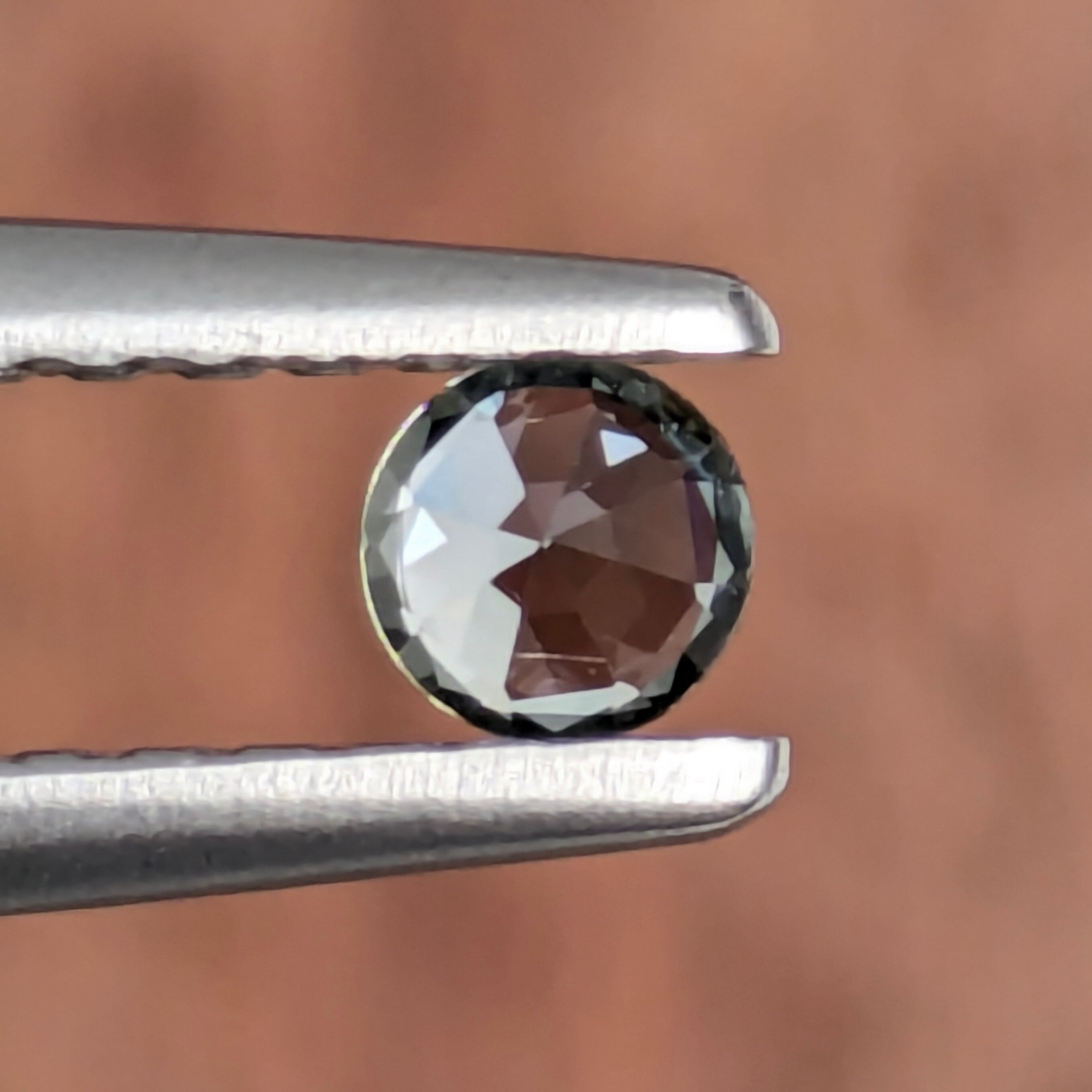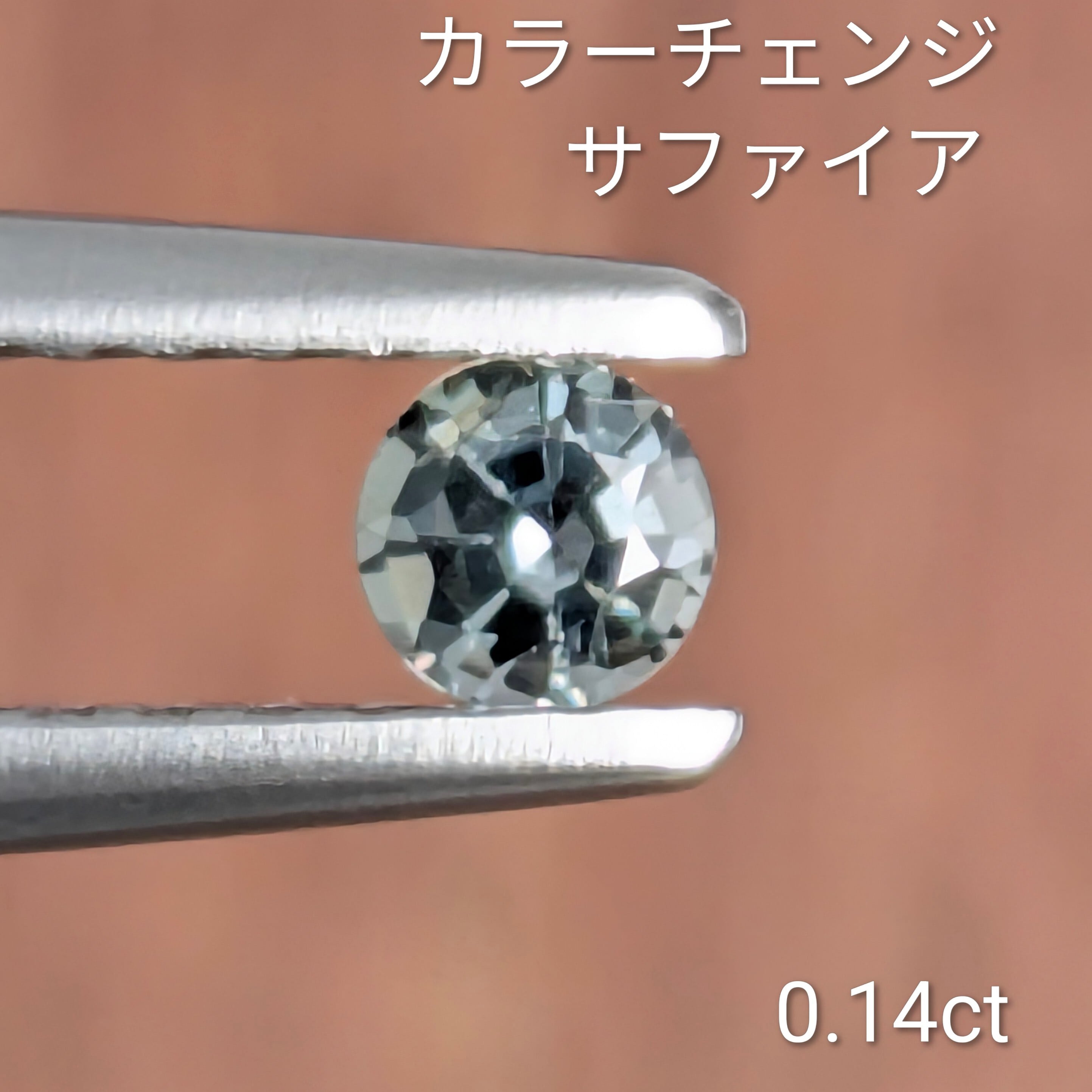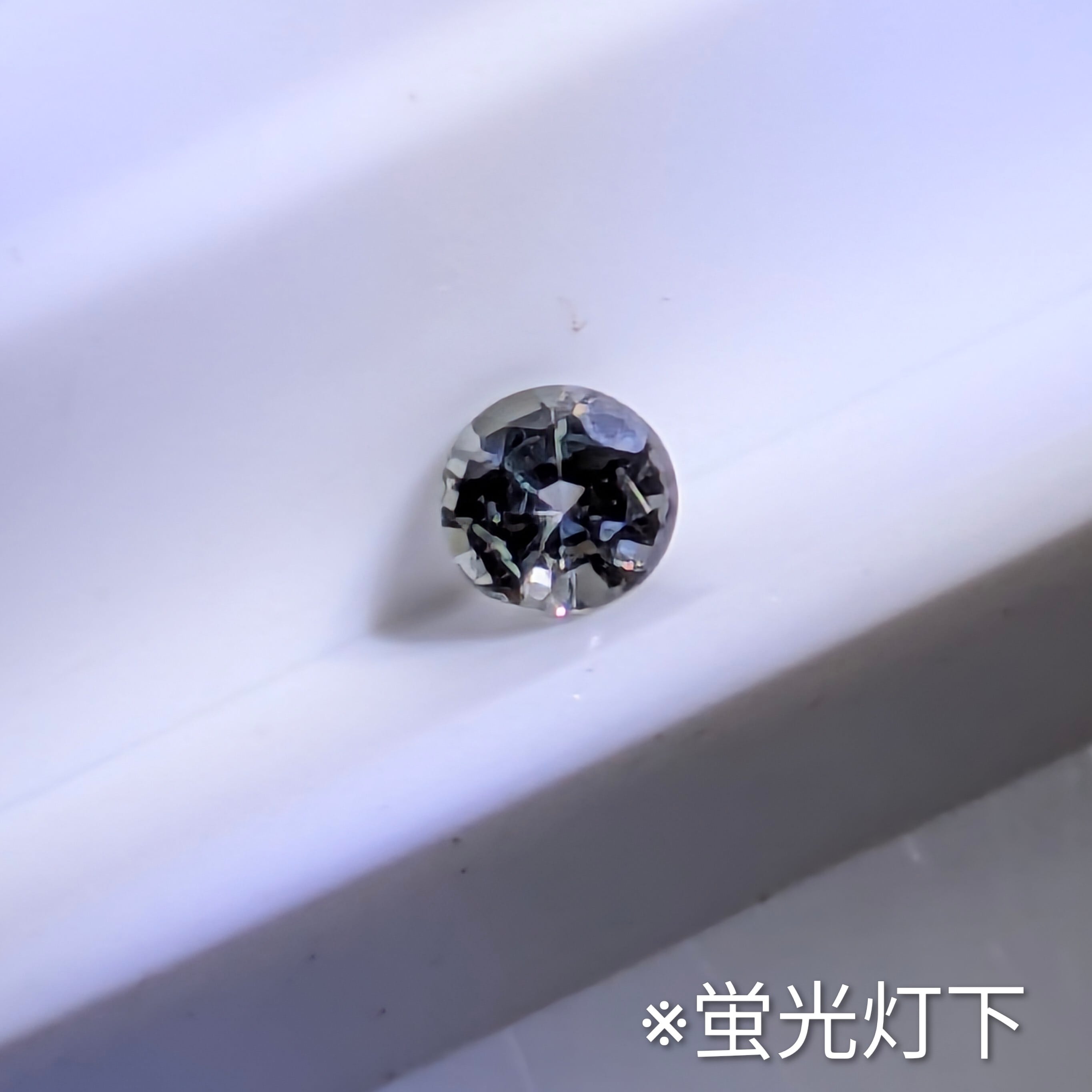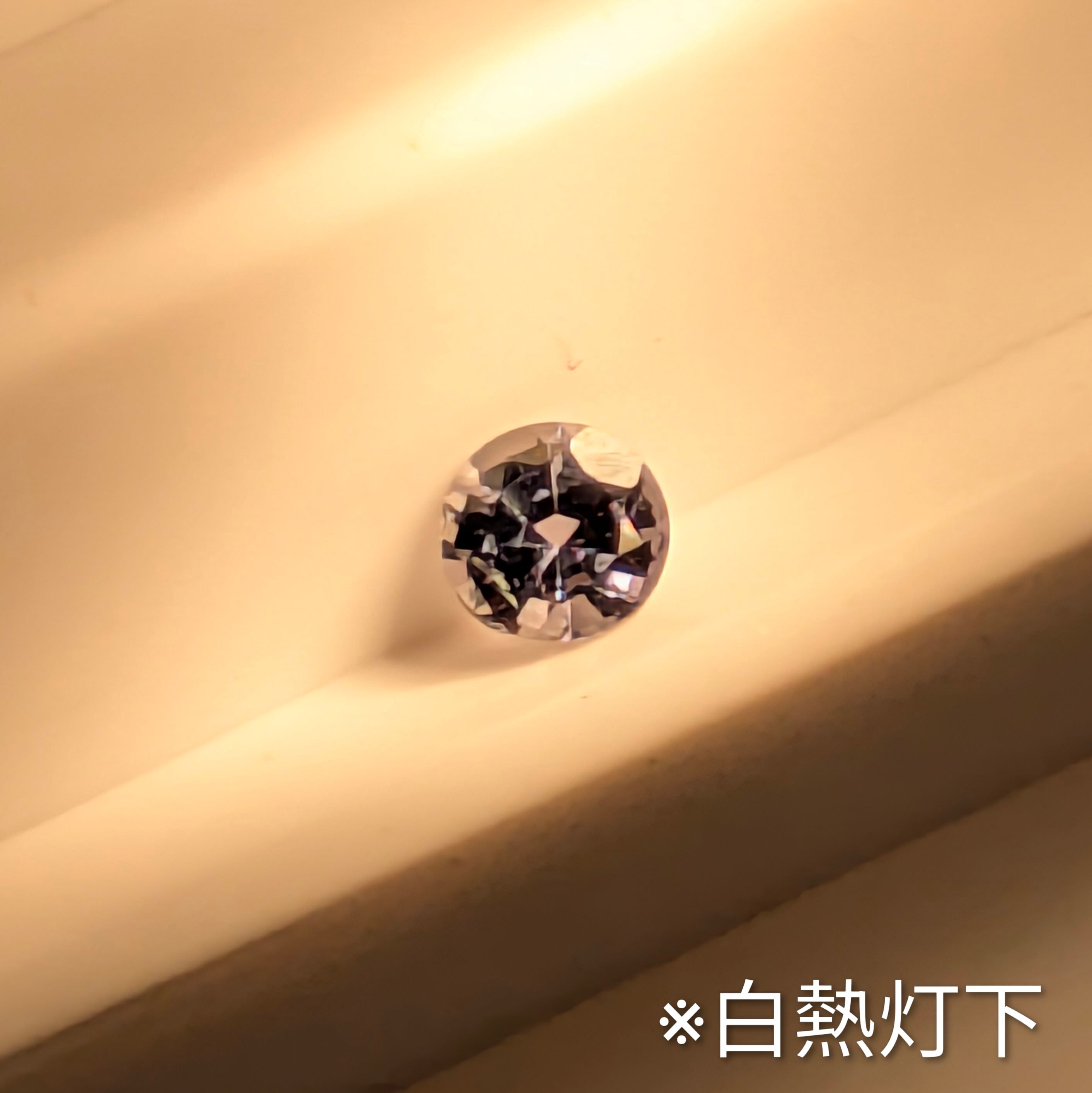 カラーチェンジサファイアは、「青紫(日光下)」から「赤紫(白熱灯下)」へと光源によってその色が変化することが多いですが、今回のこちらの個体はどちらかというと通常光下で「シックなグレー(輝きを伴う銀灰色)」といった印象です。白熱灯をあてると、思い出したかのようにうっすらと紫色味を帯び、その静かで奥ゆかしい姿に『和』のようなものを感じます。奥ゆかしいとはいえ、サファイアだから輝きは強いです。