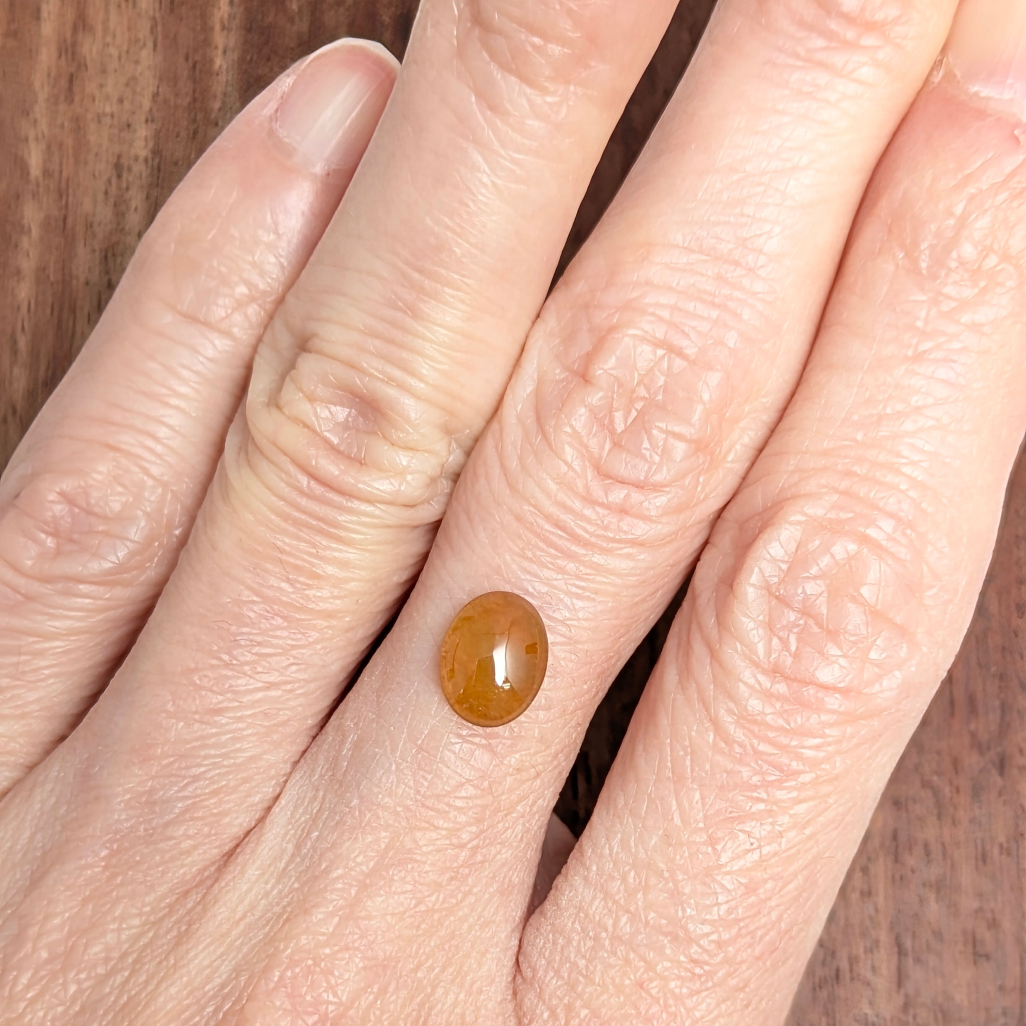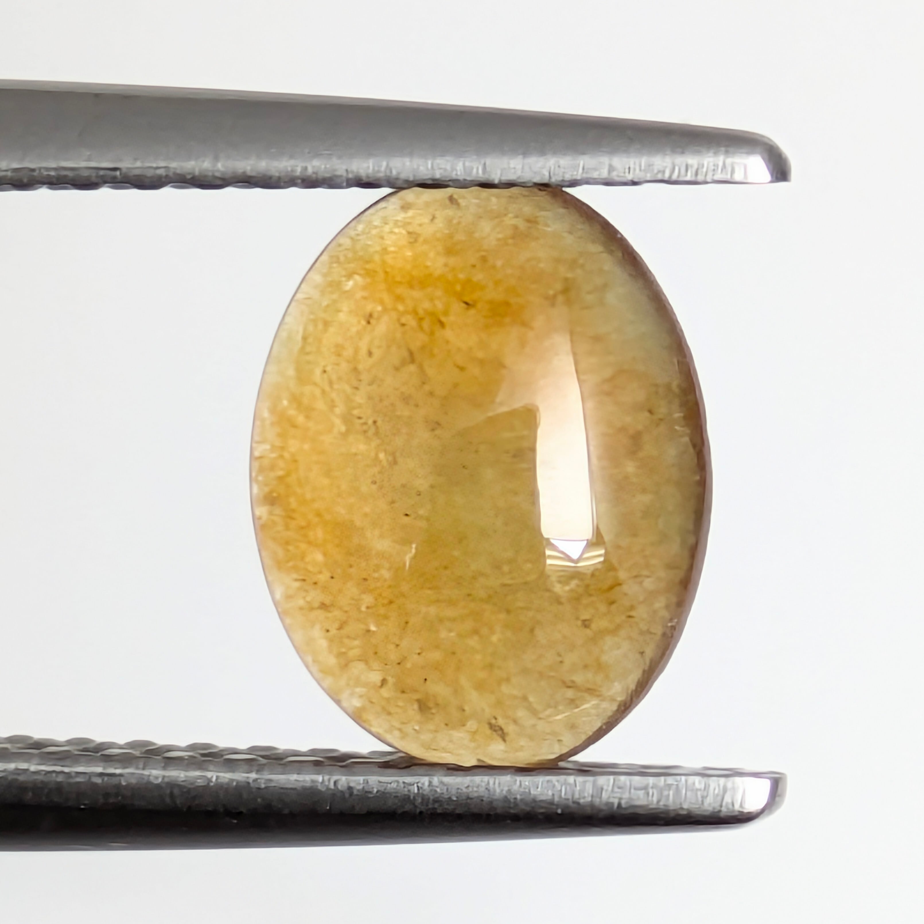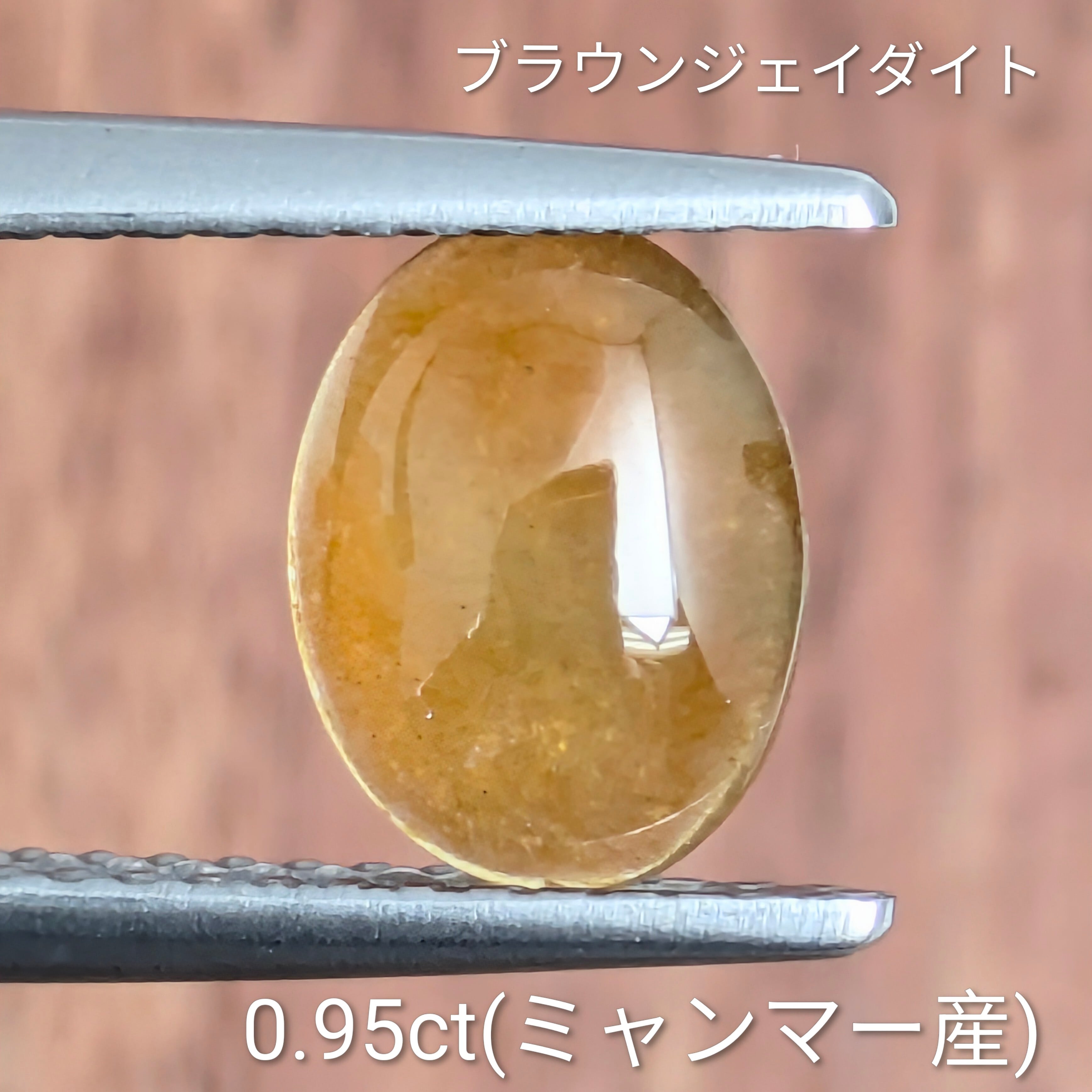 『翡翠(ひすい)』と聞くとグリーンを一番に思い出すと思うのですが、日本国内ではちょっと珍しい「ハニーブラウン」のジェイダイトのご紹介です。今回ご注目いただきたいのは、何といってもこの透明度の高さ。光に透かした時に見えるジェイダイト特有の繊維状構造が、まるでハチミツに閉じ込められた気泡たちの煌めきのようにも見えて、とてもおいしそうに見える1ピースです。まだジェイダイトはこの「ブラウン」の色因が解明されていないので、それも併せて神秘をお楽しみください。