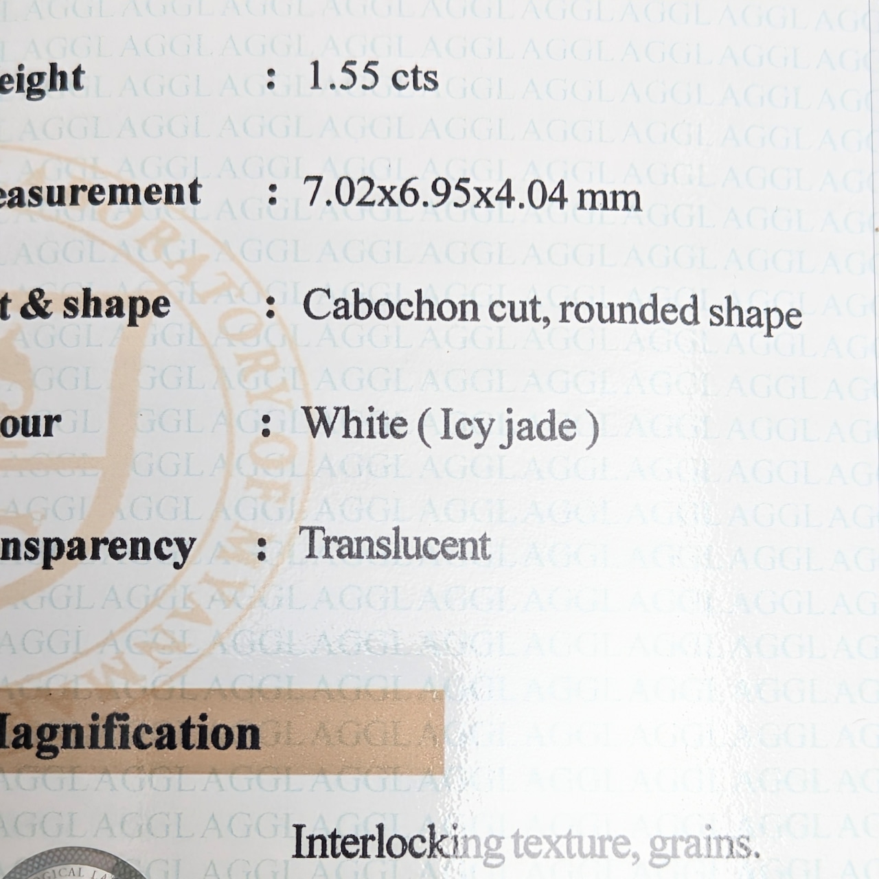 アイスジェダイト ルース ミャンマー産 【1.55ct】 PRO207931