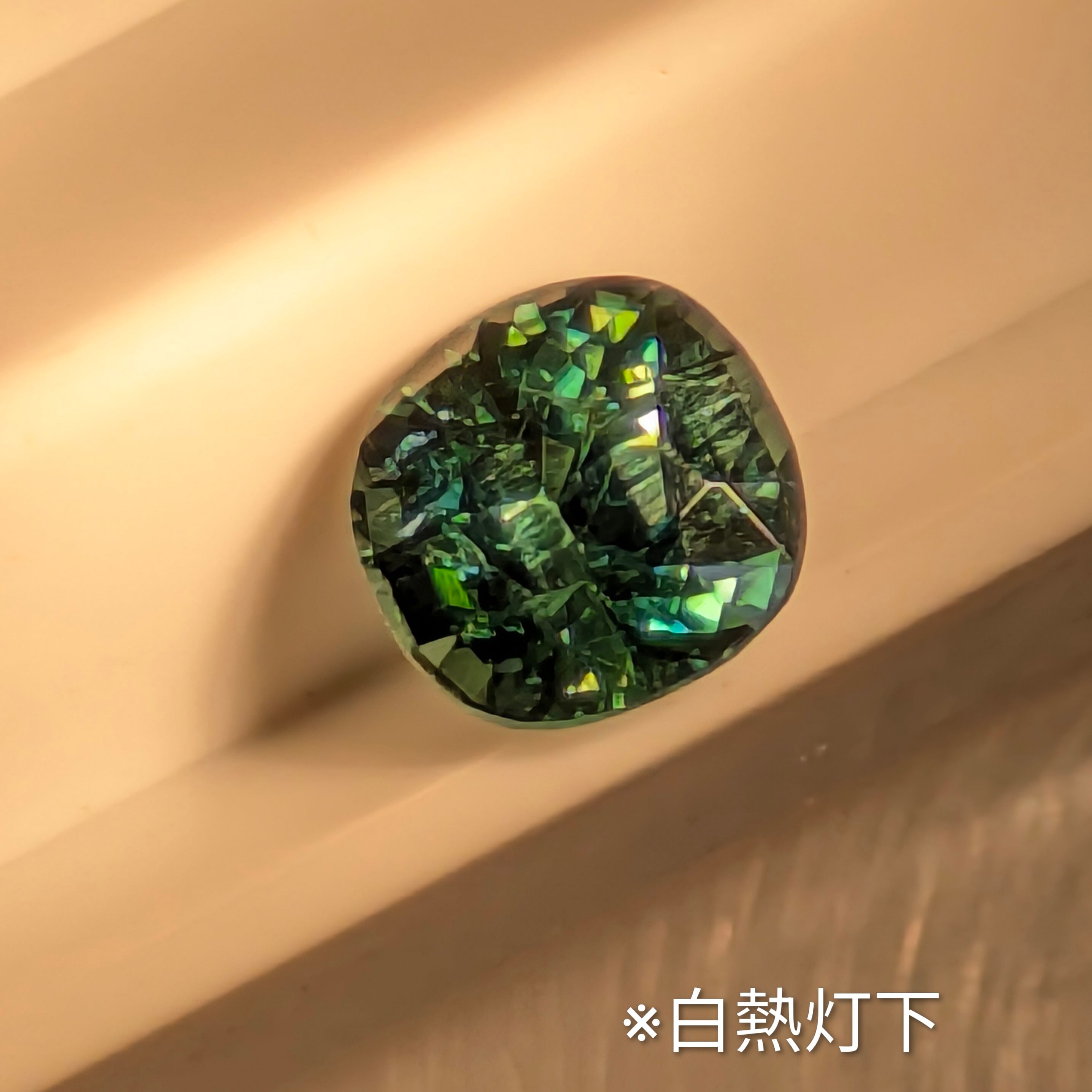 一言で「カラーチェンジ」とはいっても、その色合いは個々でとても個性的です。特にジルコンはブルー系からグリーン系に劇的に変化するその色合いが秀逸。肉眼で見ていても感動しますが、ひとたびルーペで内部を覗くと、不思議とそこに「パープル」の存在までも確認出来て、「一つの、同じ宝石なの・・・?」と驚いてしまいます。言わば、宝石自体は光のフィルター。虹の七色の正体を暴く、とっても高貴なフィルターなのかもしれません。