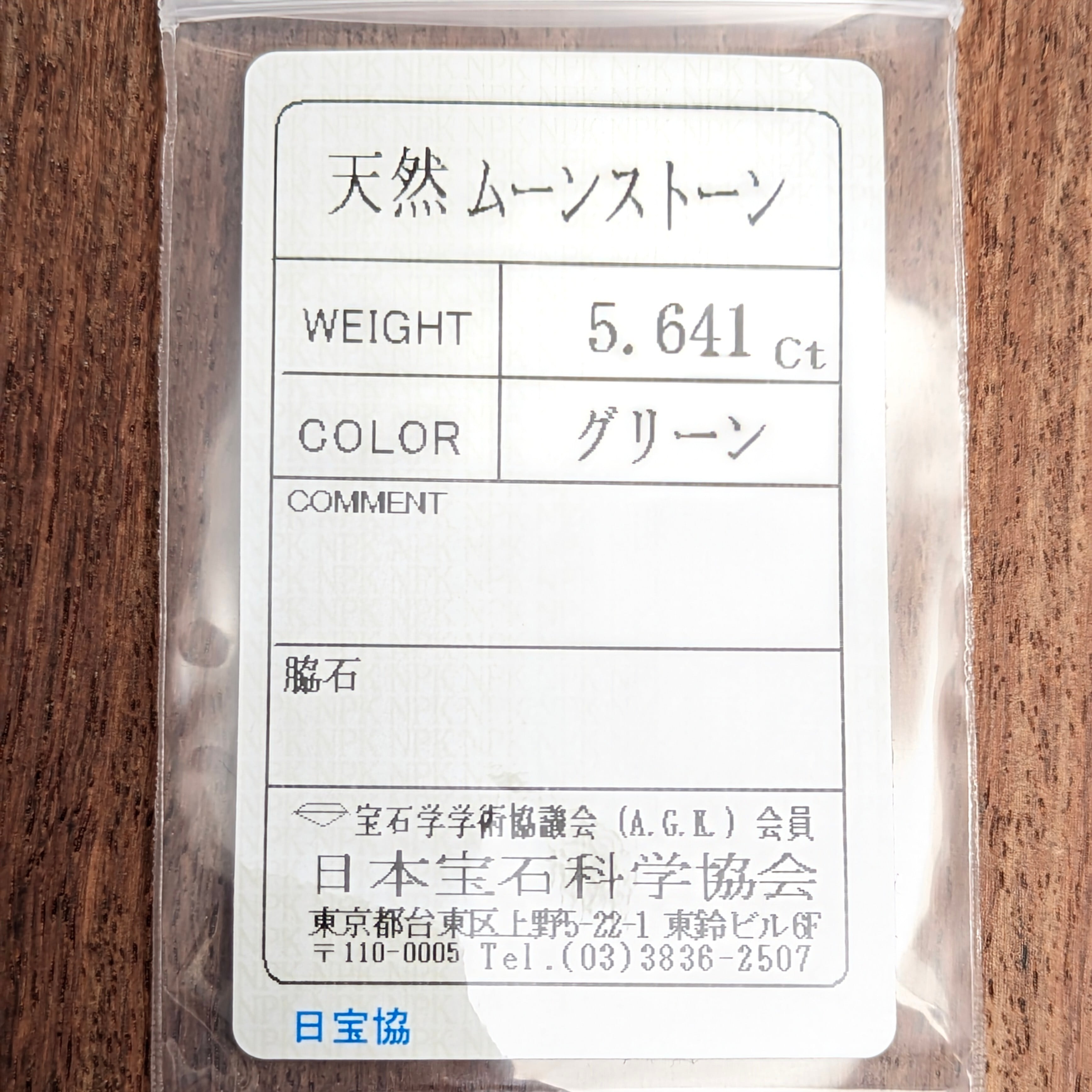 グリーンムーンストーンルース 【5.641ct】PRO208410