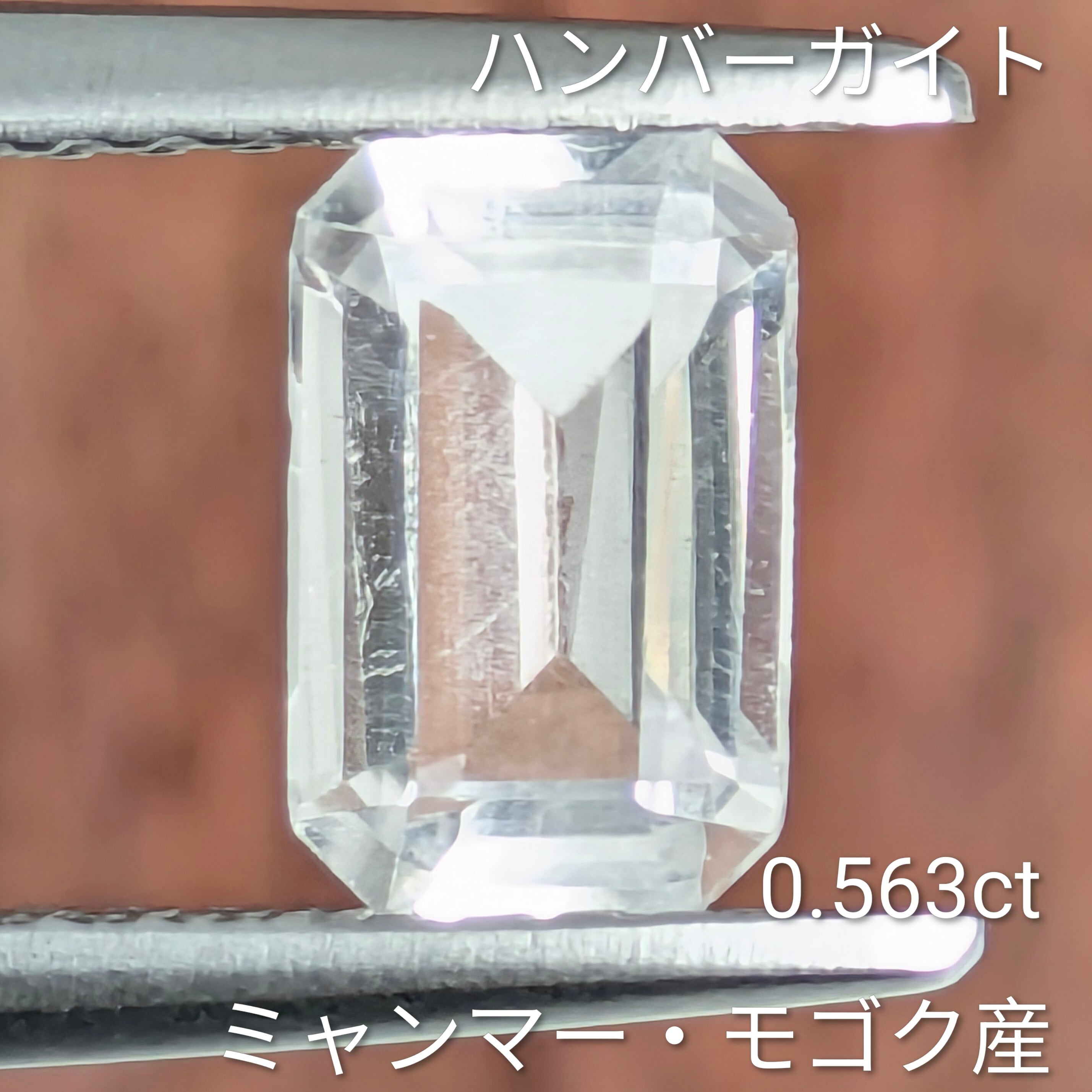 直接ミャンマーから仕入れてまいりました!レアストーンの「ハンバーガイト」の登場です。この名前を耳にするたびに、「ハンバーガーみたいでおいしそうな名前だな」と思うのですが、全く関係ない「無色透明」の、ふわりと柔らかく輝く宝石です。その特徴的な名前の由来はスイスの鉱物学者「ハンブルグ博士」の名前から来ています。スフェーンに次ぐとも言われる強い「複屈折」によるにじみ効果が、この柔らかな美しさに繋がっています。