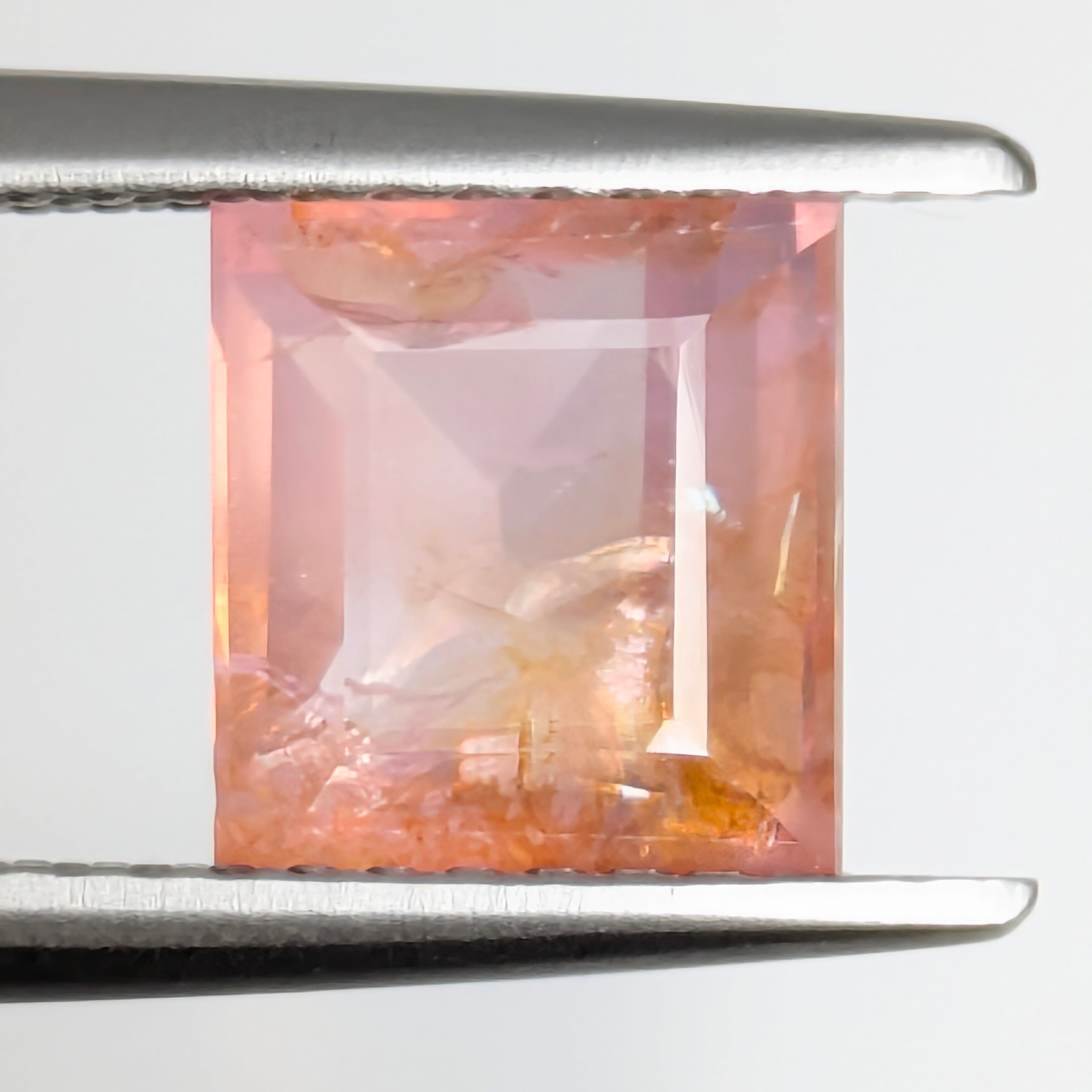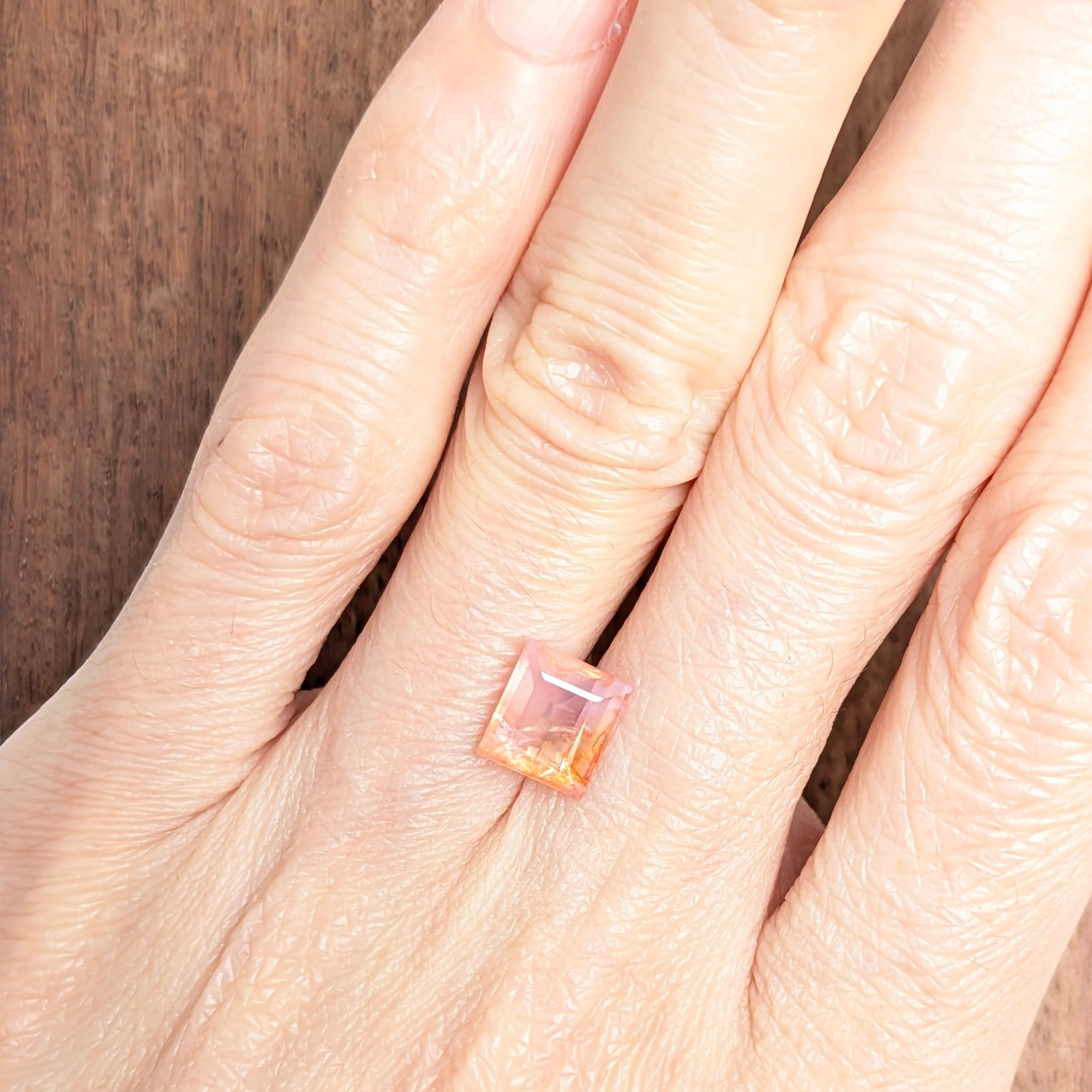 海辺のコテージの四角い窓から海を臨む、美しい夕焼けを眺めている1シーンのようなサファイア。非加熱の「ピンクサファイア」となっていますが、所どころに散らばるオレンジ色の色ムラがとても風情のある1ピース。全体的にクラウドが入っていることでシルキーな雰囲気もあり、まさに夕陽が沈むマジックアワーの瞬間を閉じ込めたような幻想的な美しさです。微かに見えるインクルージョンは、波間に煌めく水しぶきの煌めきか・・・。想像力が掻き立てられる1ピースです。