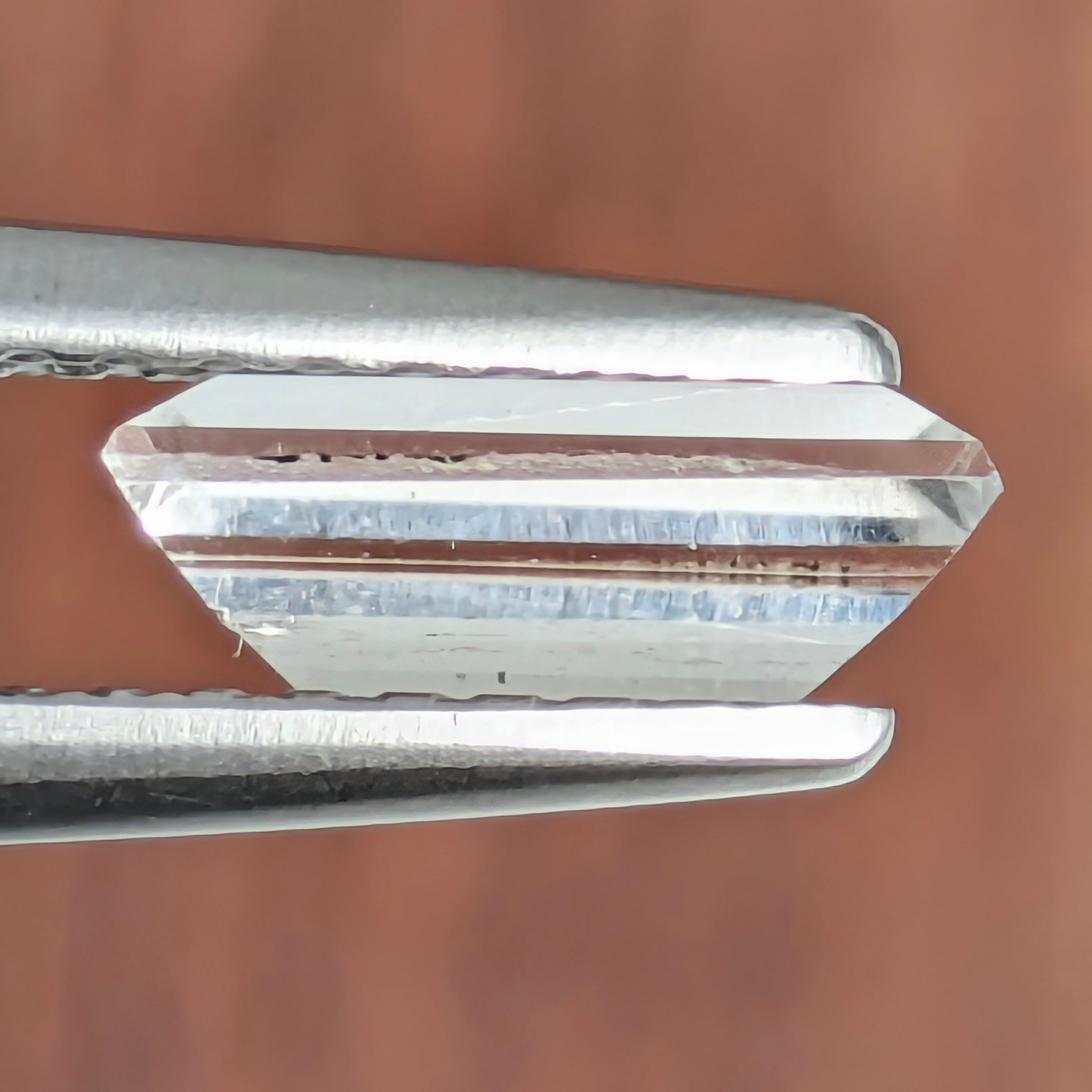 プクプク・・・プクプク・・・と、地底から湧き出る清水のように、清い透明感が印象的な1ピース。「ハンバーガイト」というちょっと厳つい名前とは対照的な、とても涼やかな美しい輝きの宝石です。細かく散らばる透明なインクルージョンの存在と、それを惑わすように滲む複屈折から生み出されるトロリとした光の反射の美しさに目を奪われる1ピース。それにふさわしいキリリとしたステップカットが、またクールなのです。