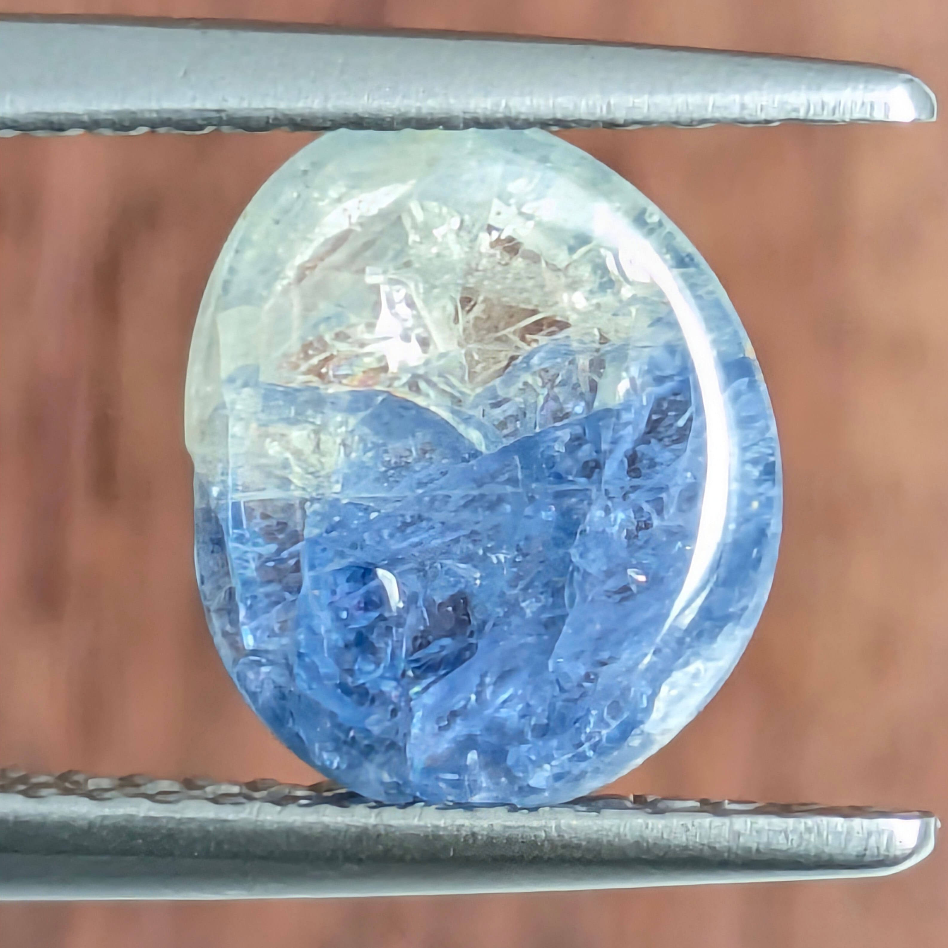 幼い頃に遊んだ「おはじき」を思い出させる、可愛らしい見た目とフォルム。ブルーと透明が仲良く並んだフリーフォームのバイカラーサファイアです。見ているだけで心が弾みます★