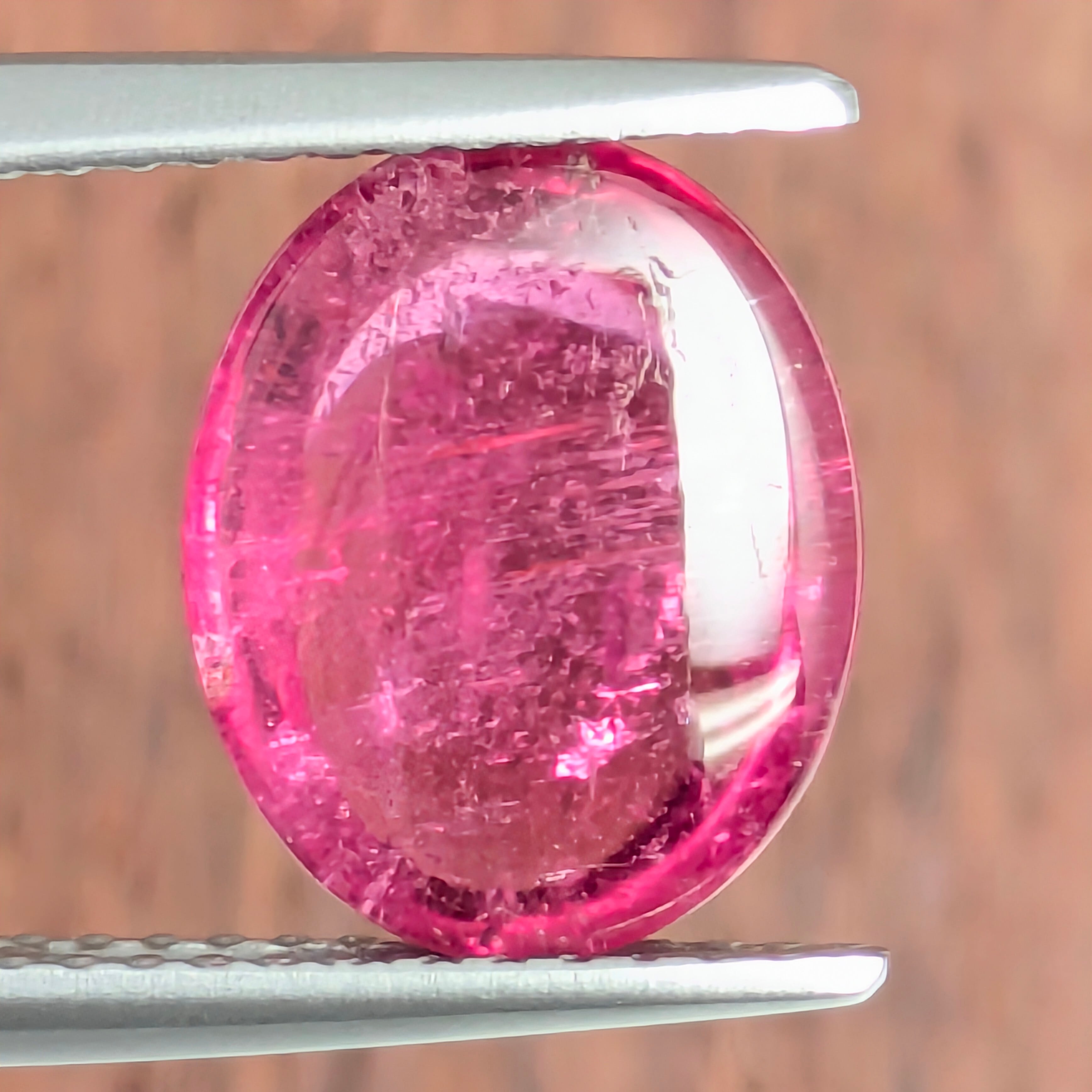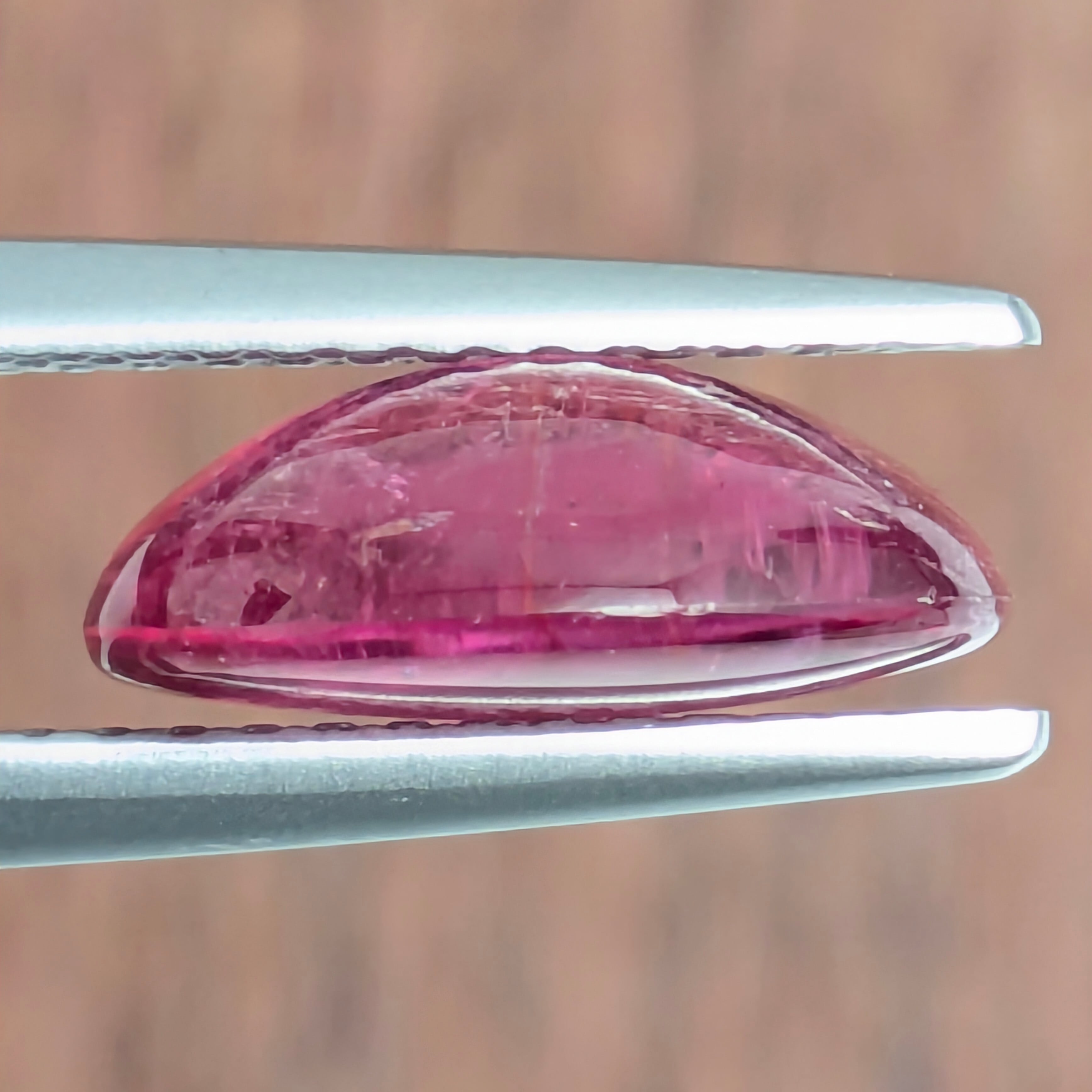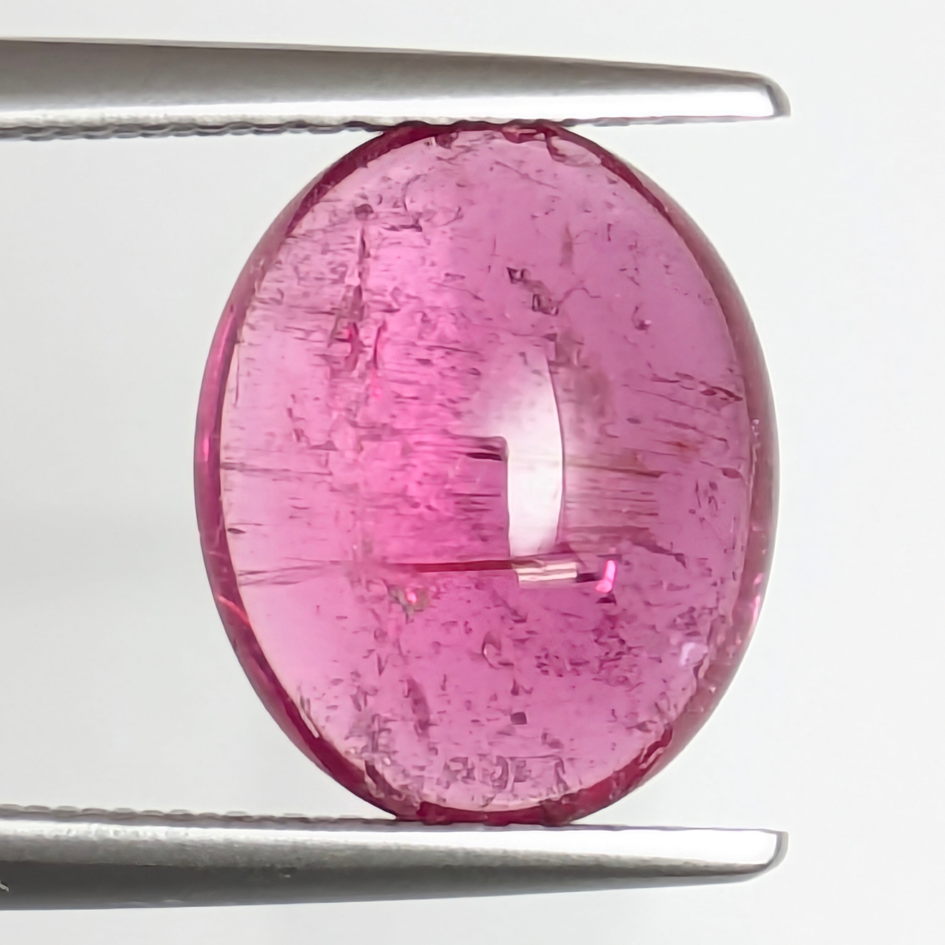 ほとんどルベライトと言ってしまってもいい色合いですが、あえて「ピンクトルマリン」でご紹介する1粒。動画の方はちょっと色が薄めに見えるかもしれませんが、理想的なレディッシュピンクの色相をした美しい1ピースです。トルマリン特有の「糸くず状インクルージョン」がホヨホヨと漂っているのが見えますが、トルマリンにとってはそれすらも表情の一つ。とにかく艶々で透明感を感じる煌めく色合いをお楽しみください。