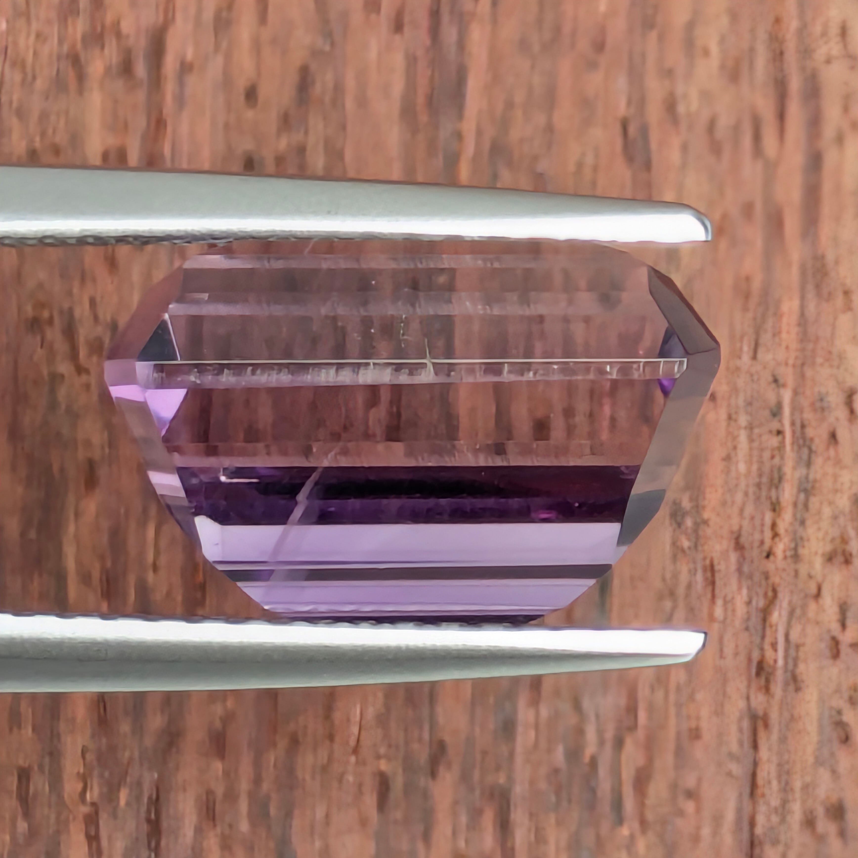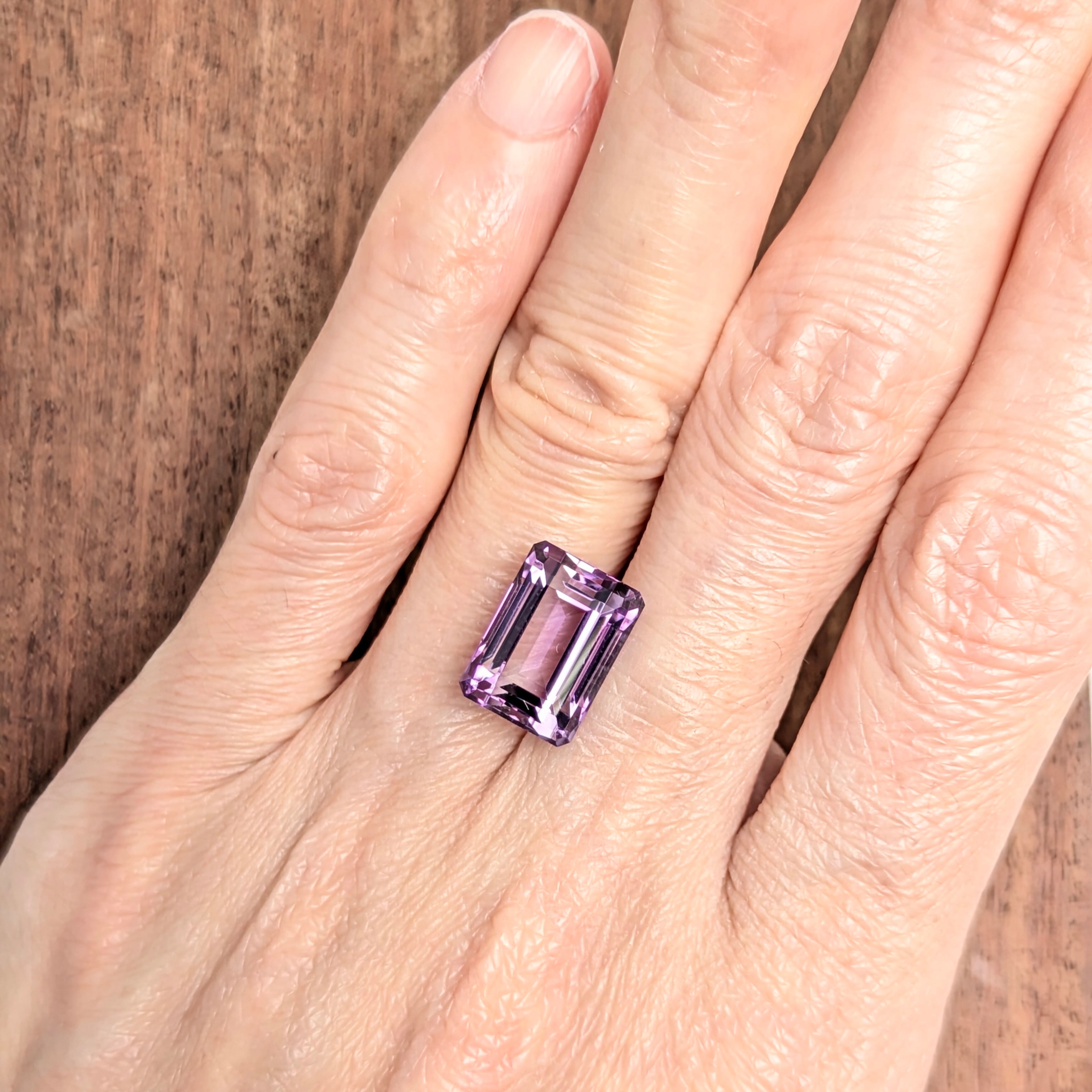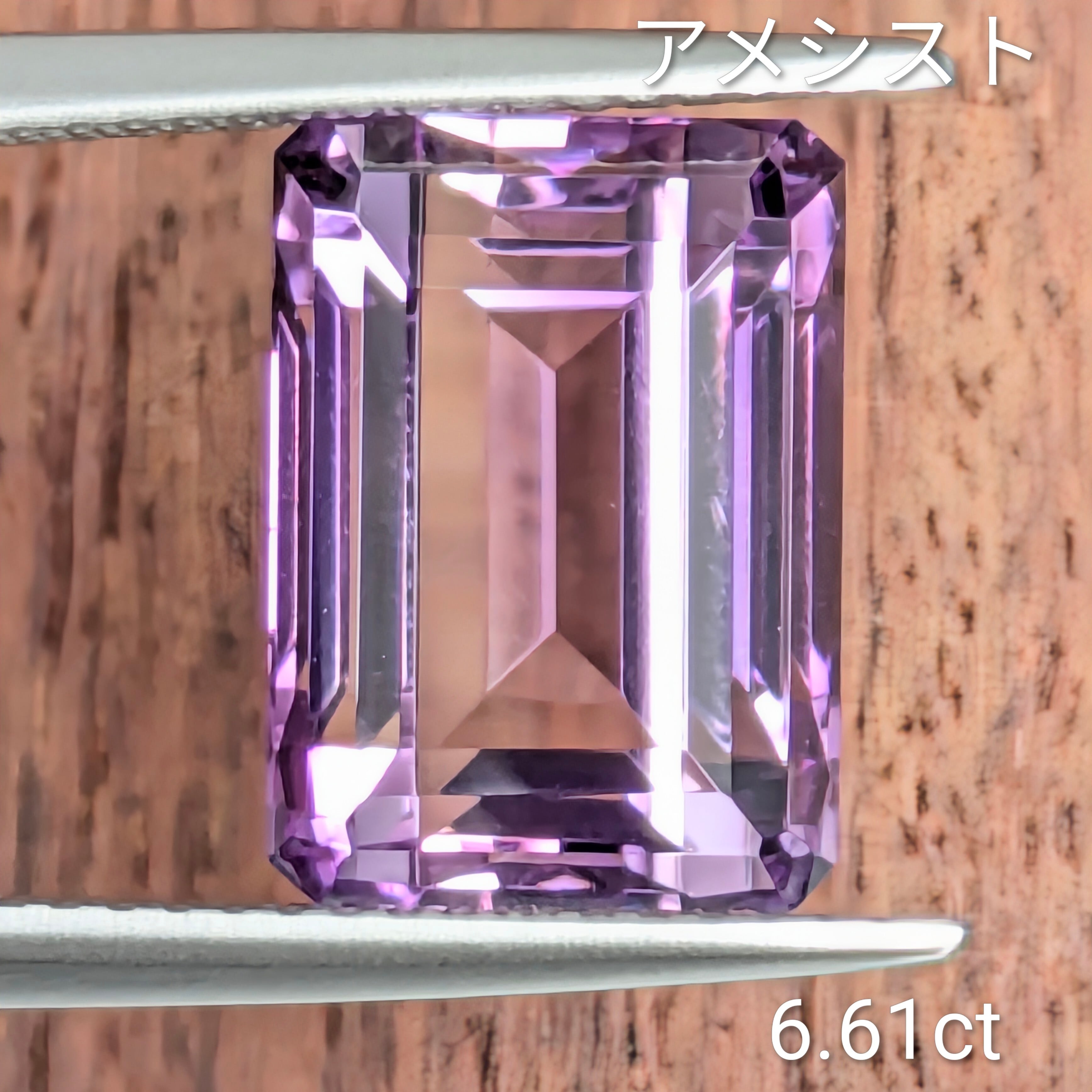 アメシストは深く濃いパープルカラーがとても美しいですが、軽やかに普段使いに使用するならテリ重視のちょっと淡めの色合いもお勧めです。今回ご紹介の1ピースは6.61ctという大粒でありながら、光に煌めくパンジーの花びらのように明るく軽やかな印象のアメシスト。これだけ大きなサイズでも、可憐な色合いであることで悪目立ちせず、日常のあらゆるファッションに馴染んでくれそうです。透明度も非常に高い、美しい1ピースです。