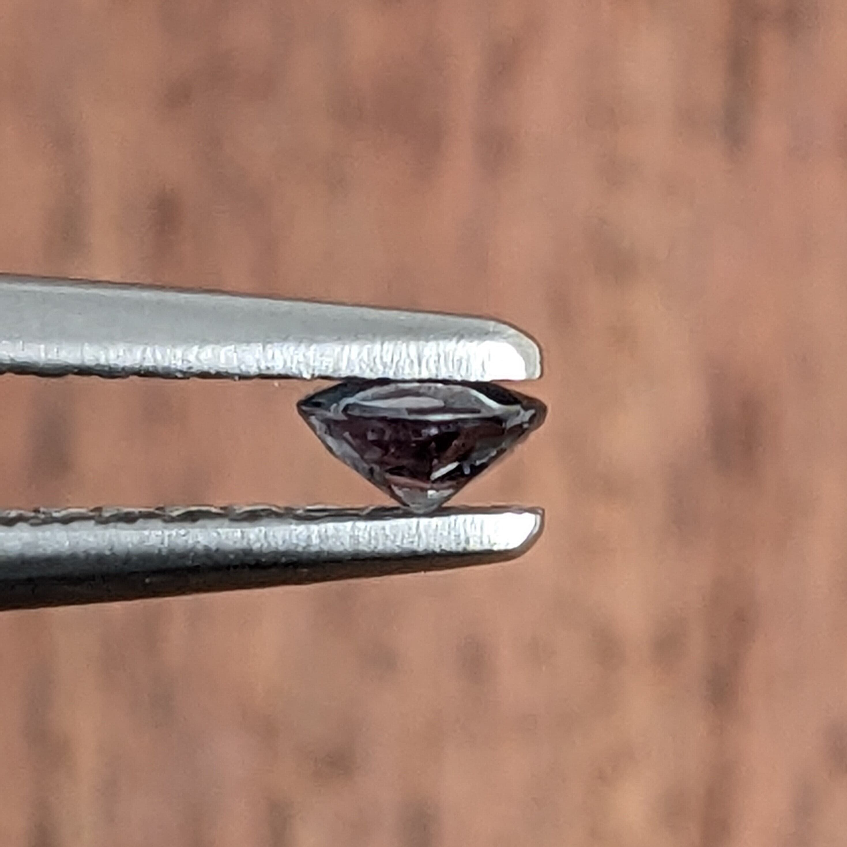 小粒ですが、変色の度合いがとても綺麗な1ピース。アレキサンドライトのご紹介です。6月の誕生石にも加えられたレアストーン。今回ご紹介のこちらの石は、太陽の下で青みを帯びた緑色、白熱灯の下で紫色っぽく変わる子です。小さいけれどその変化は劇的で、とても神秘的な美しさです。光源の違いによってその姿を変えるわけですが、実際私たちが暮らしている空間は複雑に光が絡まりあっているので、微細な光の違い(室内、太陽光下、電灯下などなど)でもその色の揺らぎを楽しむことができます。お勧めの1ピースです。