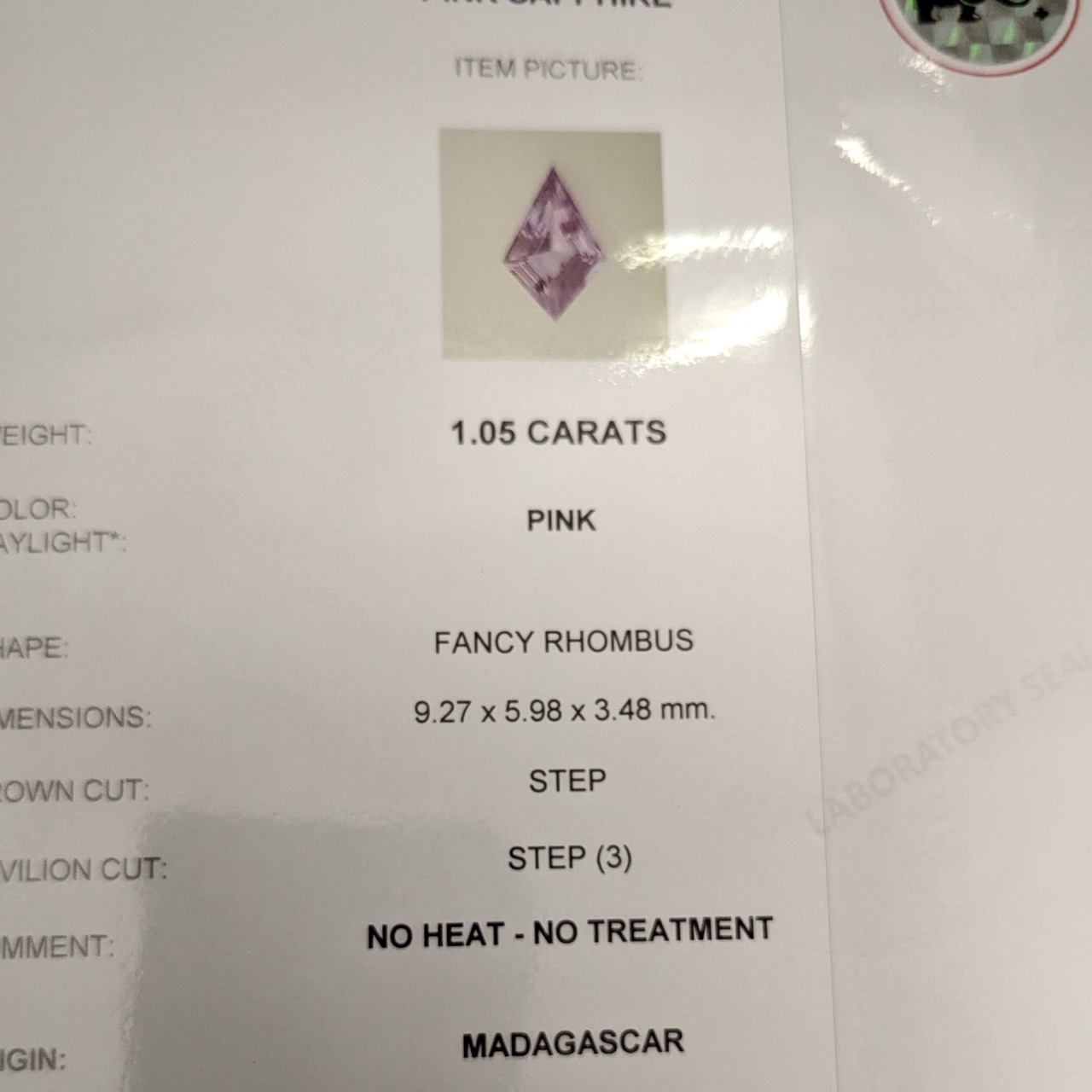 非加熱ピンクサファイアルース マダガスカル産【1.05ct】PRO205919