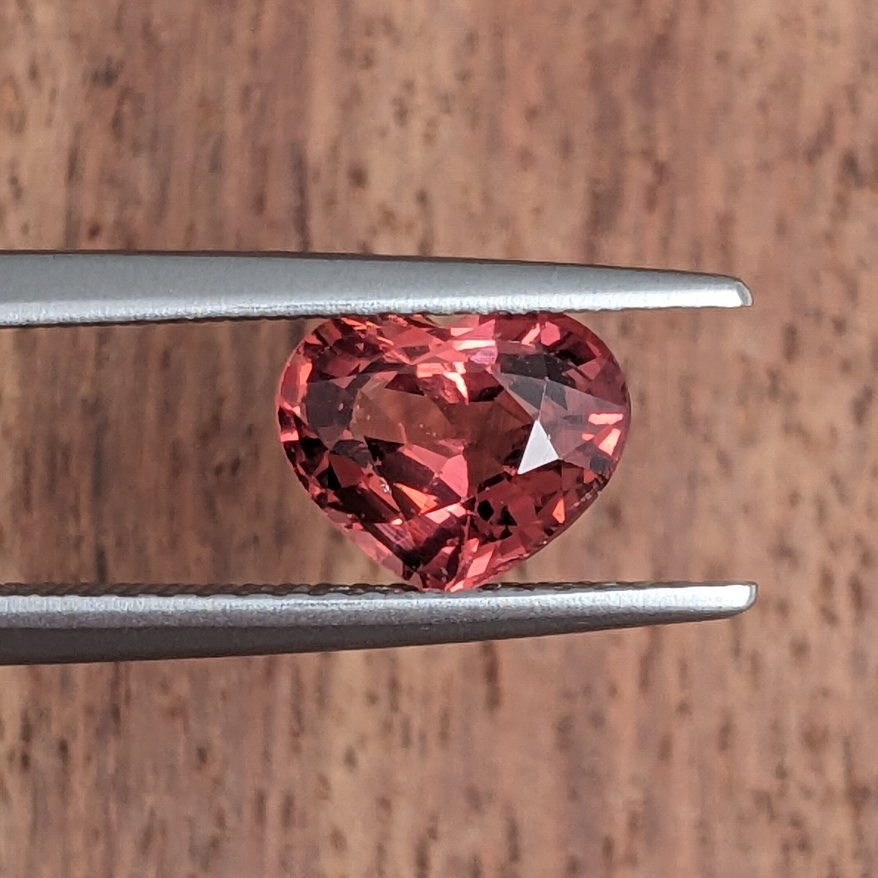 ミャンマー・モゴク産の天然スピネルが、とってもかわいいぷっくりハートで登場です。こちらは、直接当店が仕入れてきた自信の1ピース。カラーカテゴリは「Orange」となっているのですが、実物はオレンジ味をかんだ赤色といった感じで、限りなく赤色に感じます。スピネルは本当にない色が無いといわれるほど色が豊富で、個体による色の幅も非常に広く、コレクター泣かせの宝石。今回の1ピースもちょっと中間色で、柔らかなハートのフォルムが歳を重ねても長く使っていけそうな大人な雰囲気も併せ持った石。とってもキュートです☆