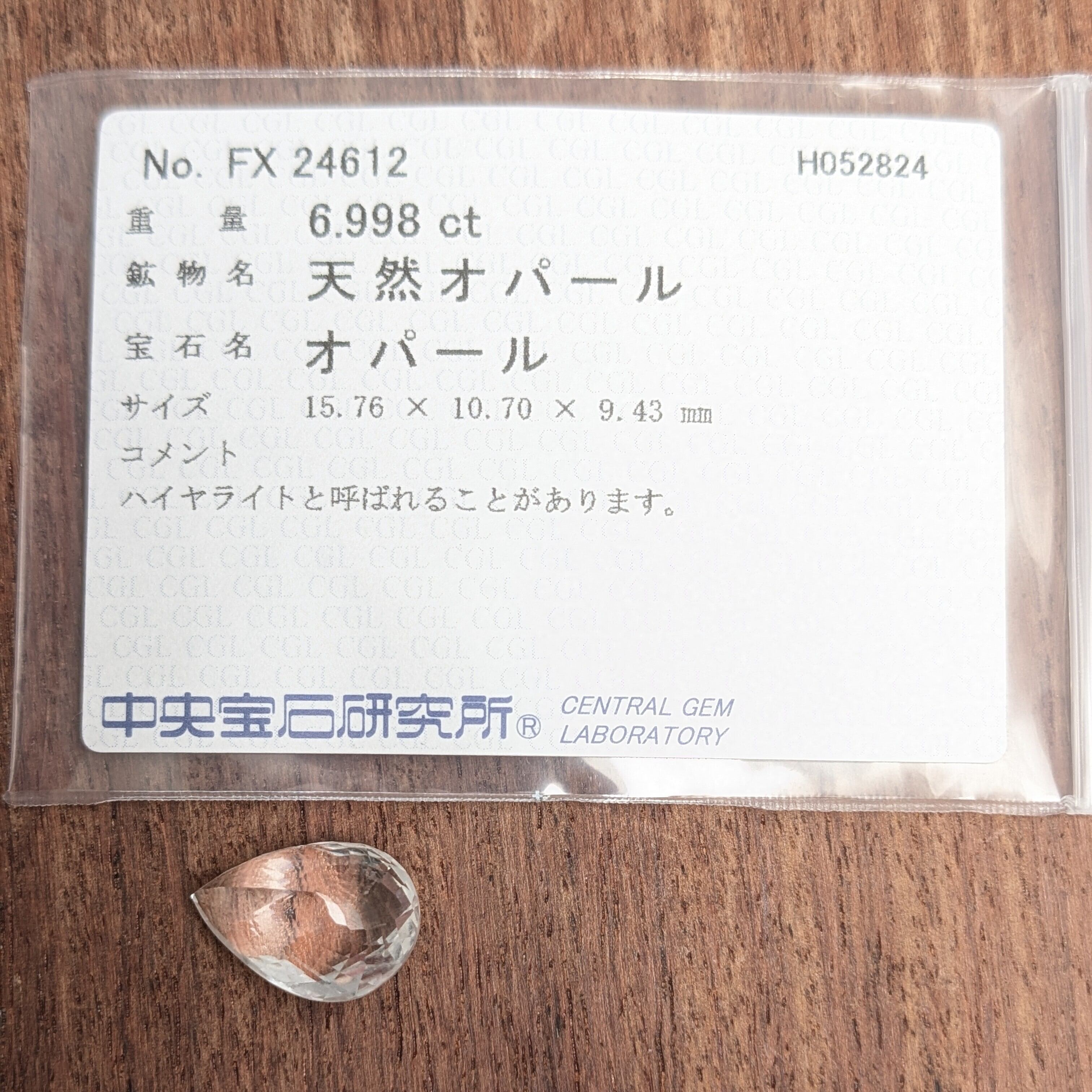 ソーティング袋は業者間取引に使用される簡易レポートですので、傷んでいる場合もございます。別途料金で鑑別書を作成する事も出来ますのでご検討ください。