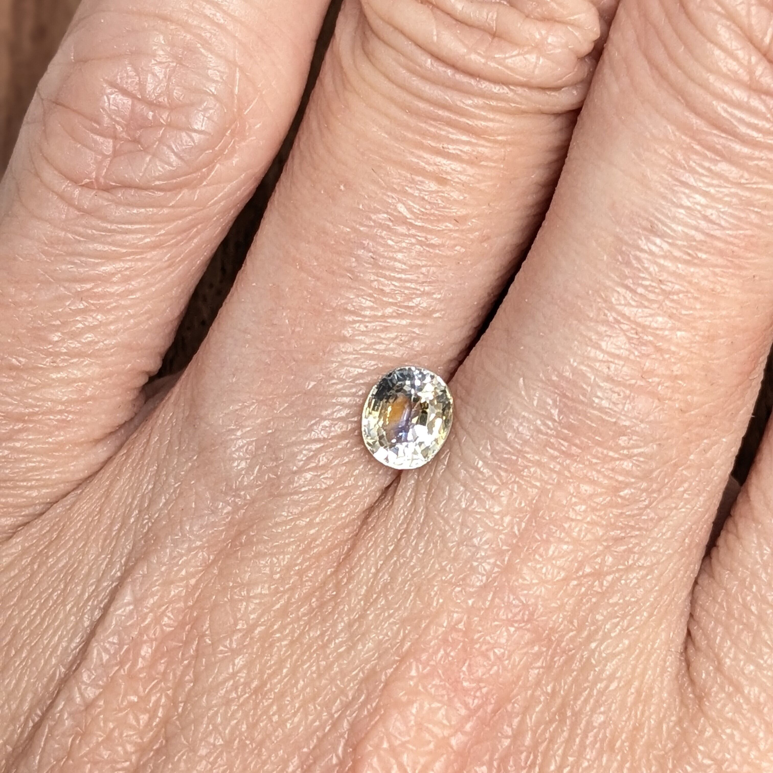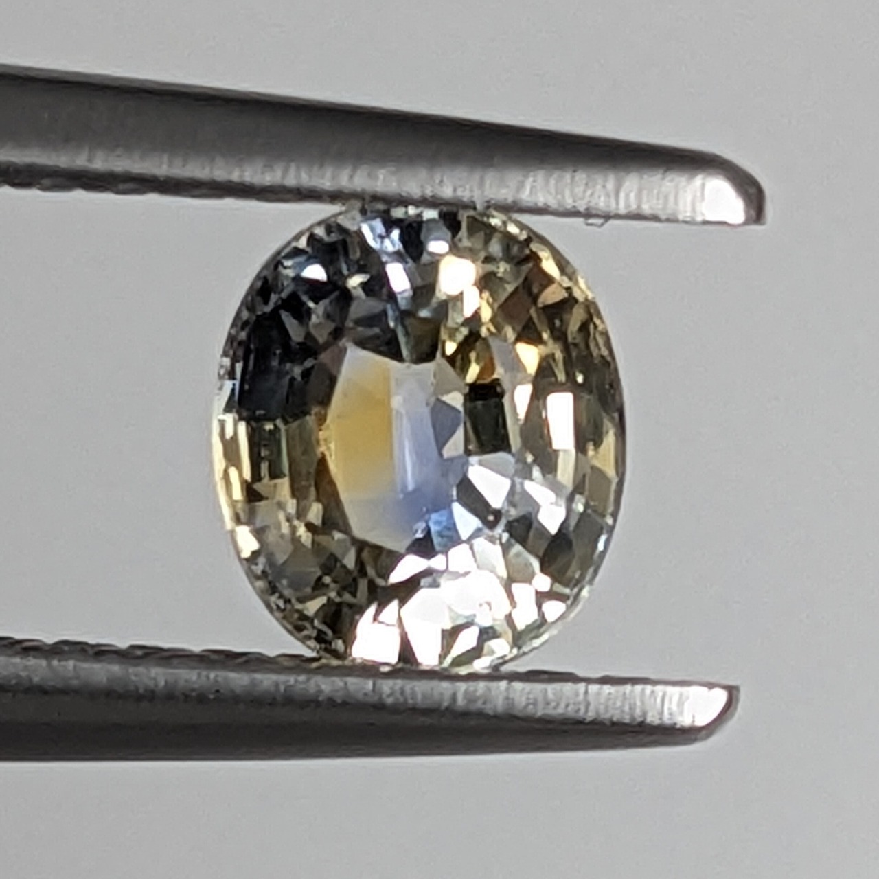 一つの結晶の中にブルーとイエローの2色が宿った愉快な1粒。ブルーもイエローも、その原因の一部は微量に含まれる「Fe(鉄)」です。闘魚を彷彿とさせる、2色の絡まる輝きが秀逸!