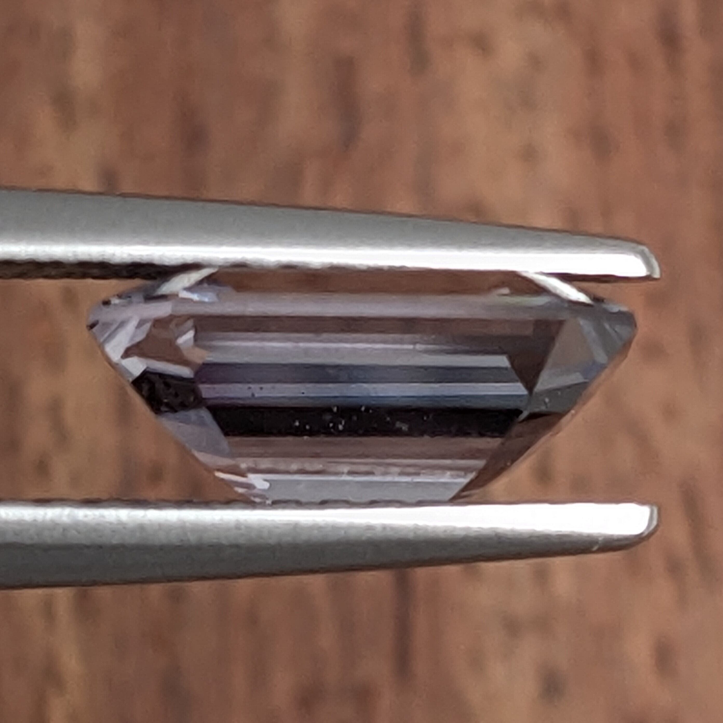 鑑別レポートには「Grey」と書いてありますが、肉眼での第一印象としては「バイオレティッシュ」な1ピース。非常に照りもよく、印象的な一粒です。中を覗くと水玉のように結晶がチラッと入っています。