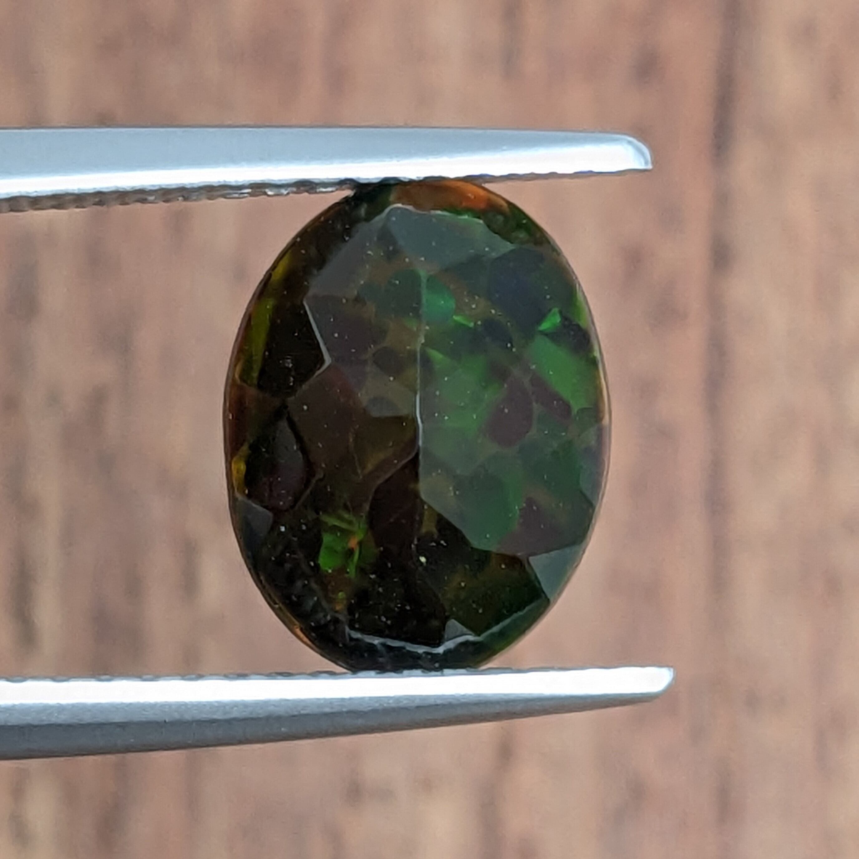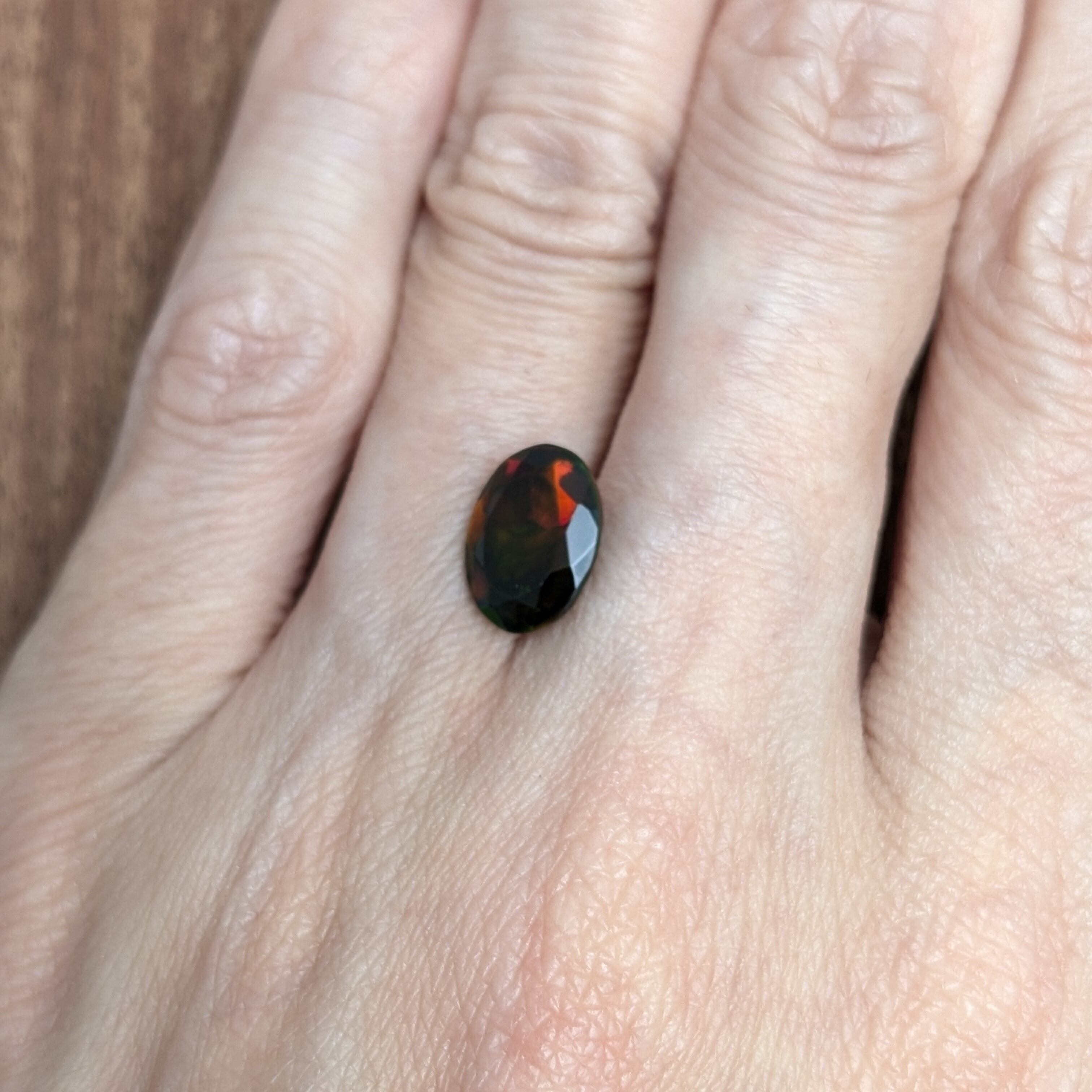 動画だと暗いですが、実際には赤色の遊色が美しく揺らめく1ピース。傾けると鮮やかにグリーンやイエローの色合いも楽しめて、とても華やかなオパールです。