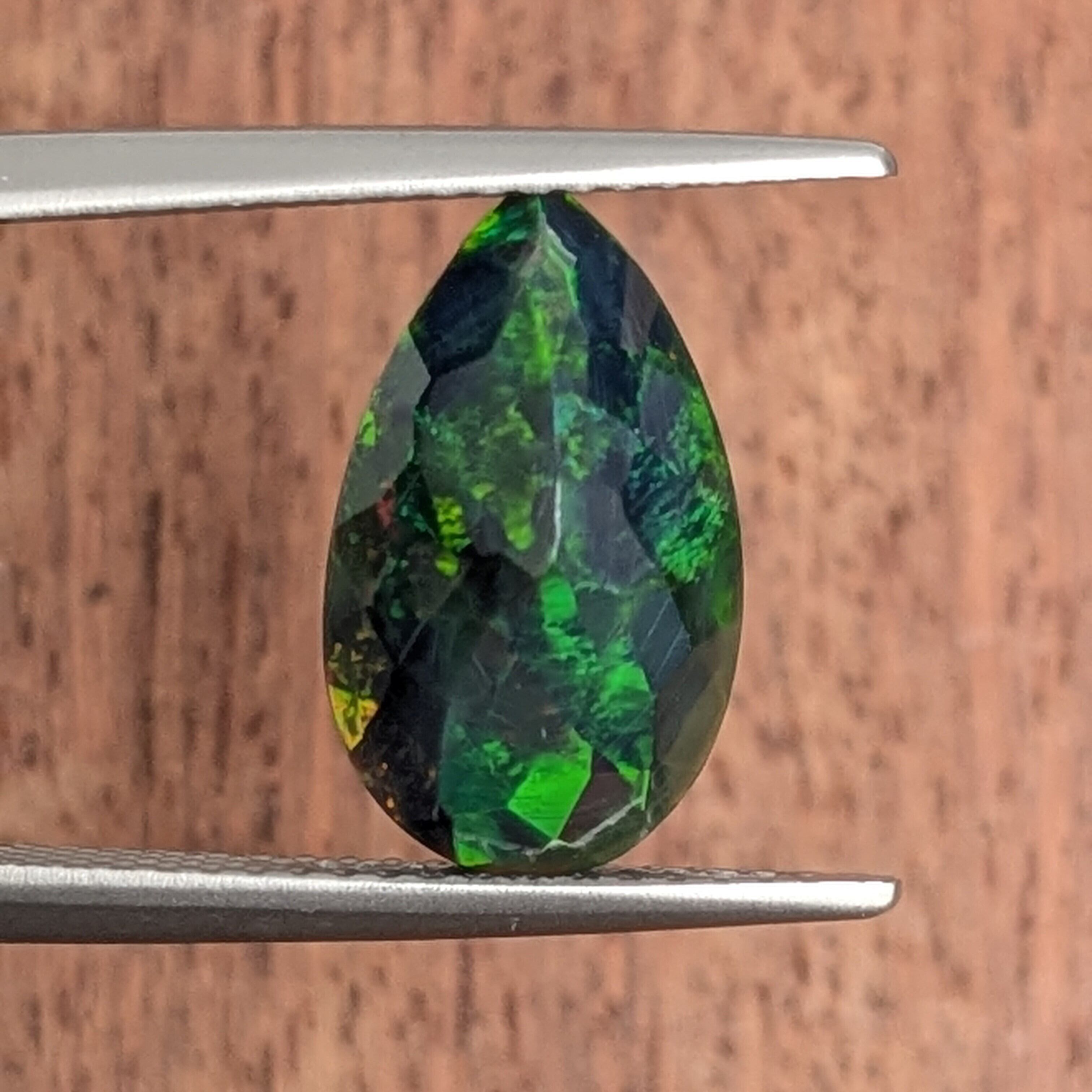 画像だとわかりにくいですが、赤~緑~藍色までバランスよく虹色が楽しめます。右下の部分が、若干遊色が出ない箇所あり。