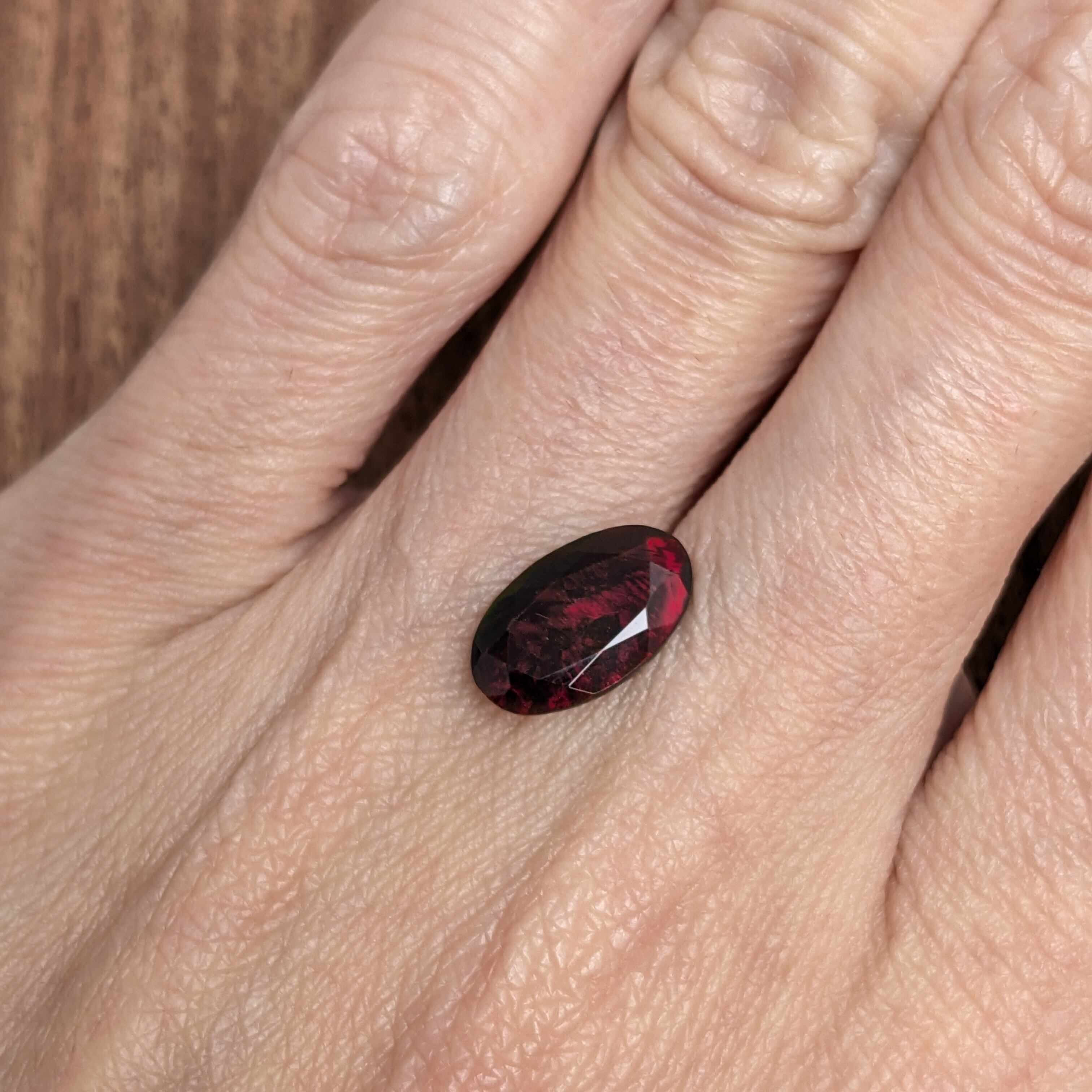 宝石の中を脈打つ血液のように、赤色の妖しい輝きが前面に出た1ピース。実物はもう少しグリーンやイエローの色彩も見えますが、何よりも印象的なのは燃えるような赤色の揺らめきです。