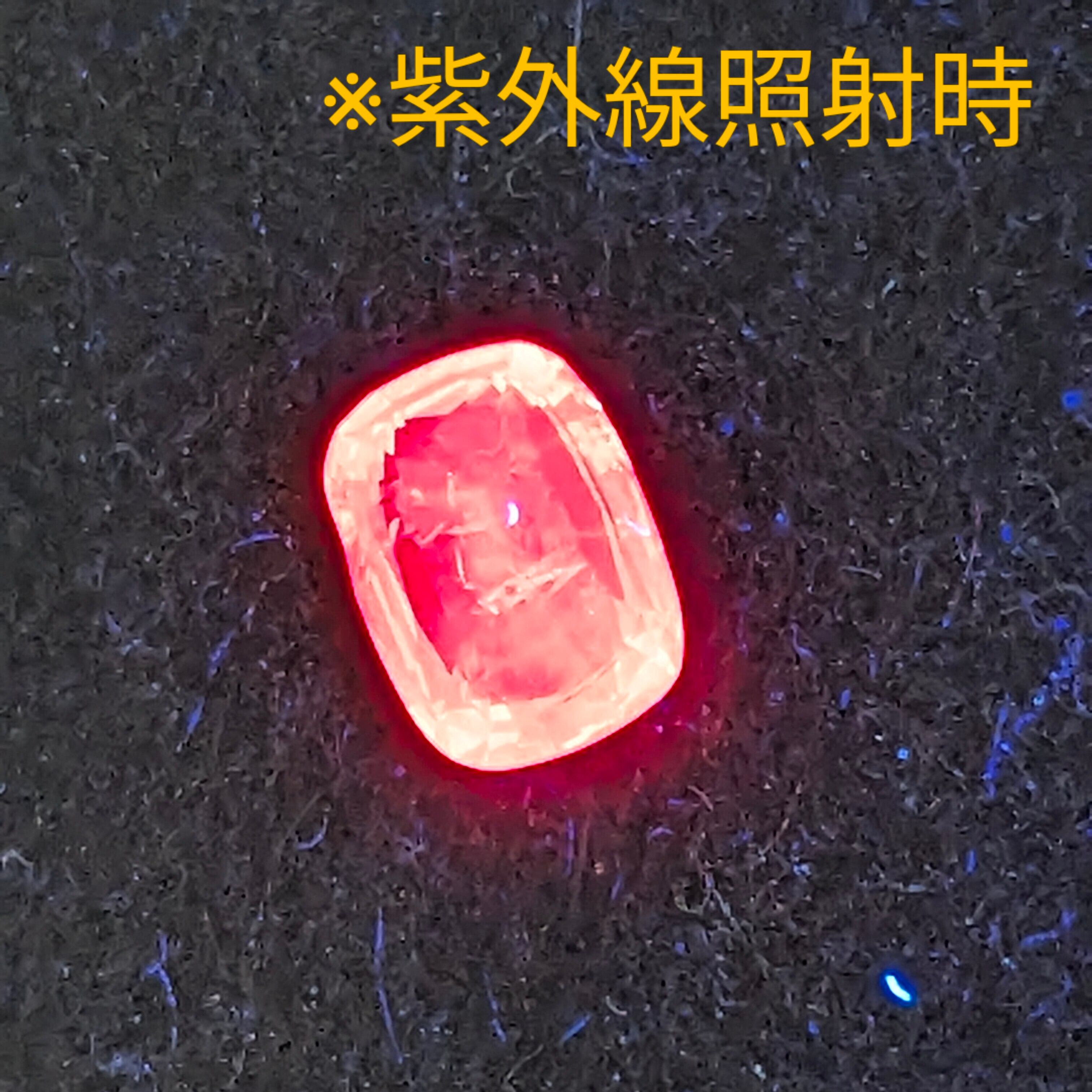 スピネルの美しいビビッドレッドは、ルビーと同じ「Cr(クロム)」に起因していると言われています。紫外線に当たると燃えるように発光し、太陽の下でより鮮やかな姿を現します。