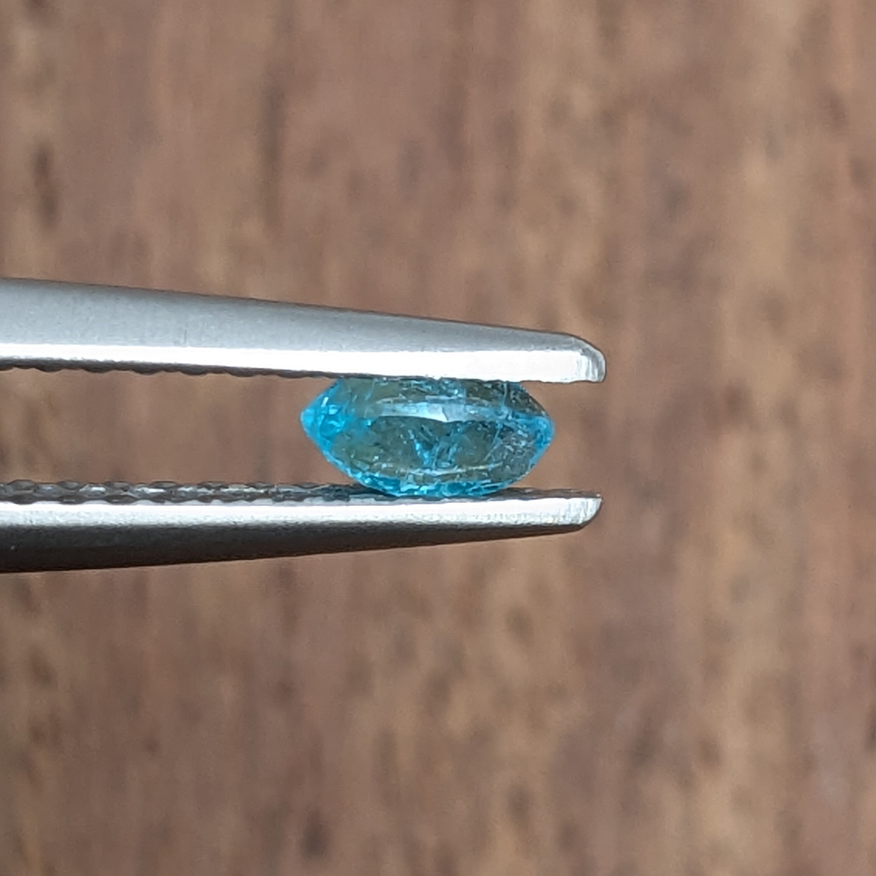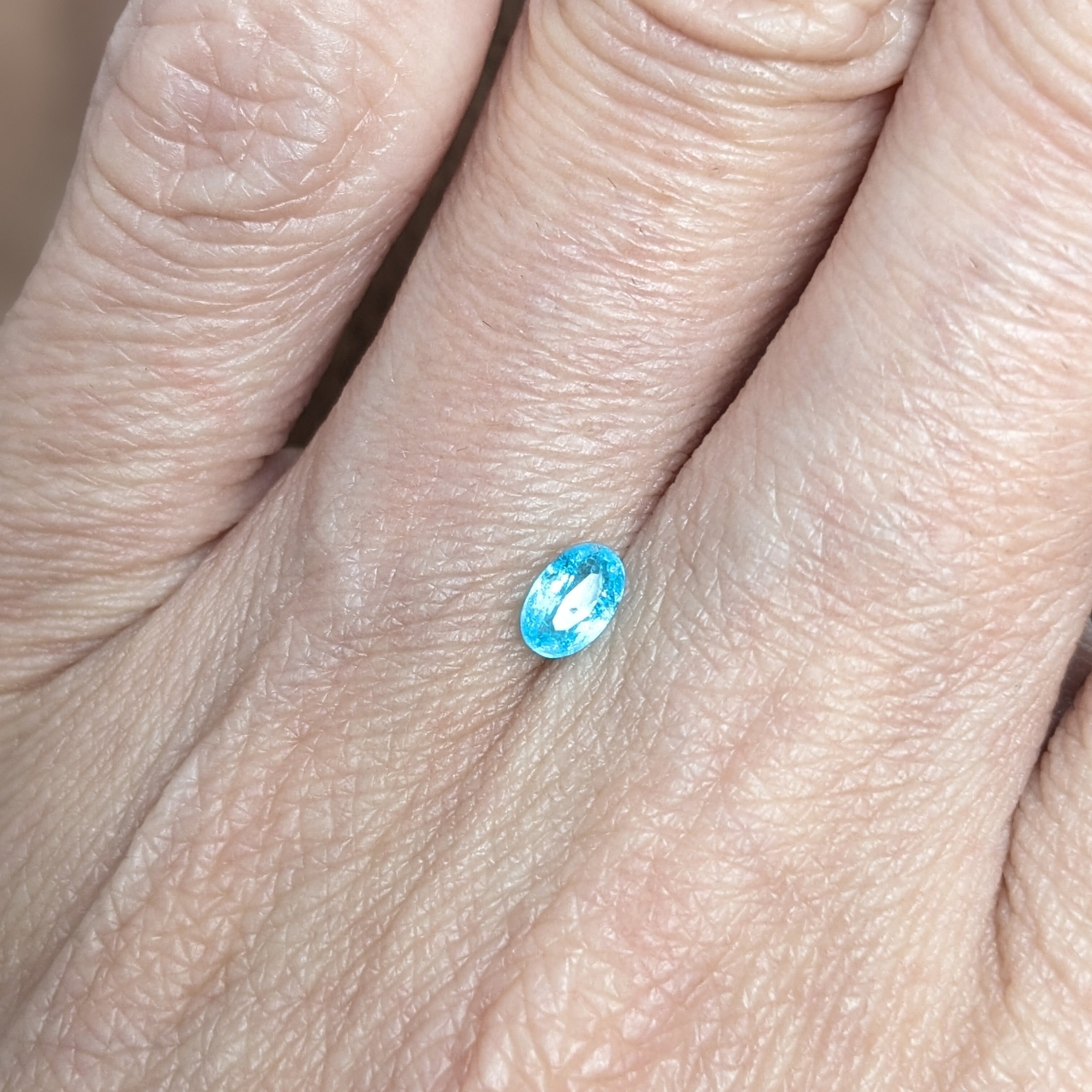 清らかな湖の妖精が宿っているかのような、鮮やかなネオンブルーと煌めきが美しい一粒。目を凝らして見つめ、耳を澄ませると、石の内部から妖精の歌声が聞こえてきそうな輝きです。