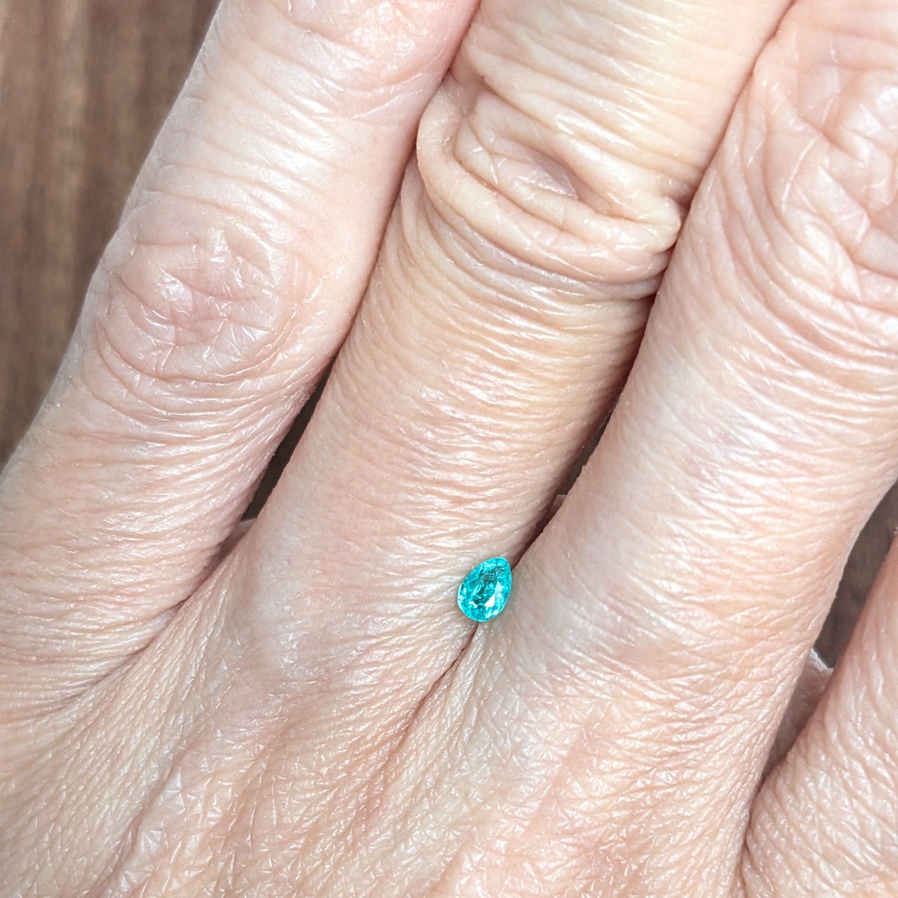 海洋神が流した一粒の涙のように見惚れる輝き。0.12ctと小粒ではありますが、若干緑色味を帯びたネオンブルーが美しい1ピース。
