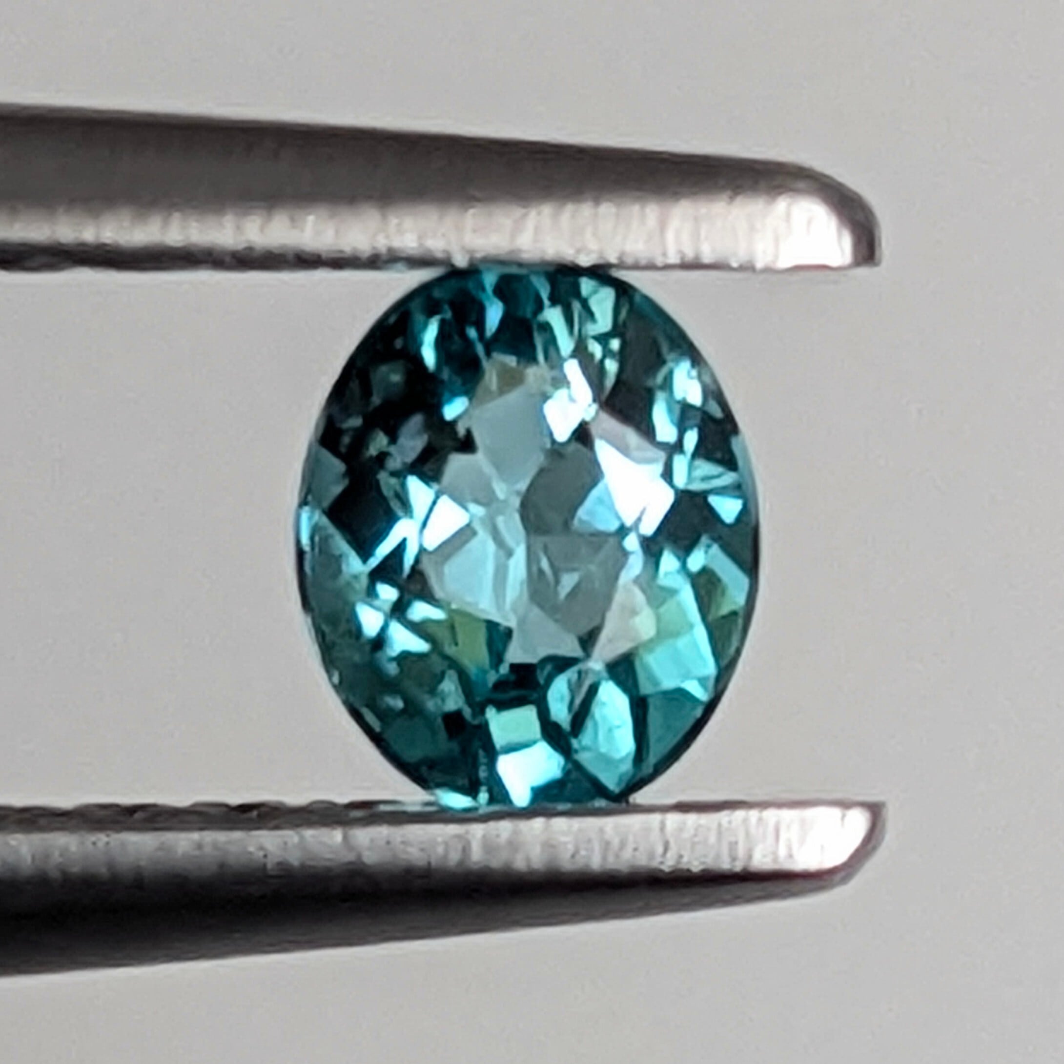 色はほんのちょっと淡めかもしれませんが、透明度と輝きが秀逸なネオンブルーの1ピース。凍える冬の朝の、北風のため息をそのまま宝石にしたような美しさです。