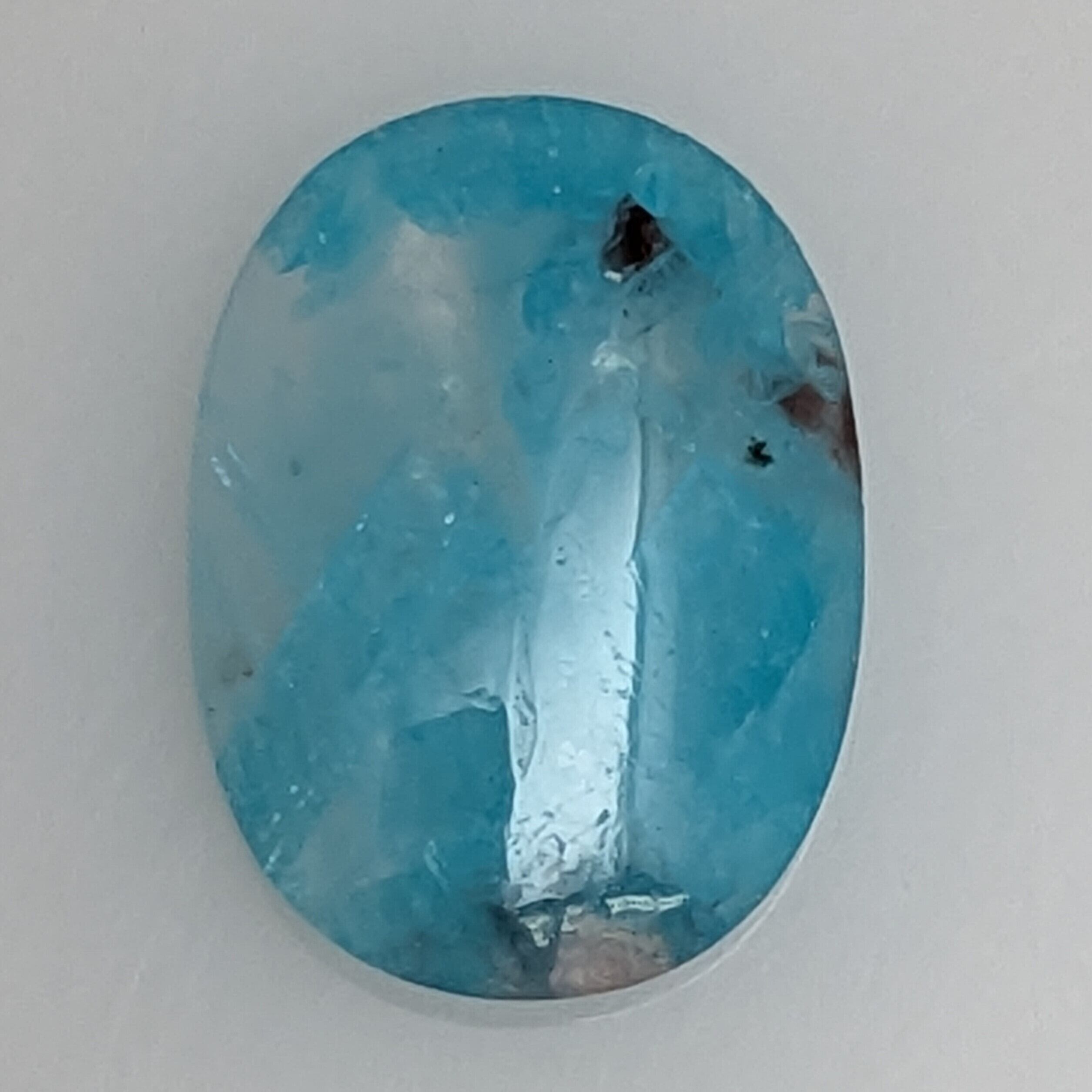 ☆ひとこと☆ 「〇〇・イン・クォーツ」という、インクルージョンに着目した水晶は意外と多いです。今回ご紹介するのは、その中でもマニア必見の「パライバトルマリン」が内包された1粒。ネオンブルーに混ざる黒っぽい結晶は、実際は光に透かすと赤紫色の綺麗な結晶です。