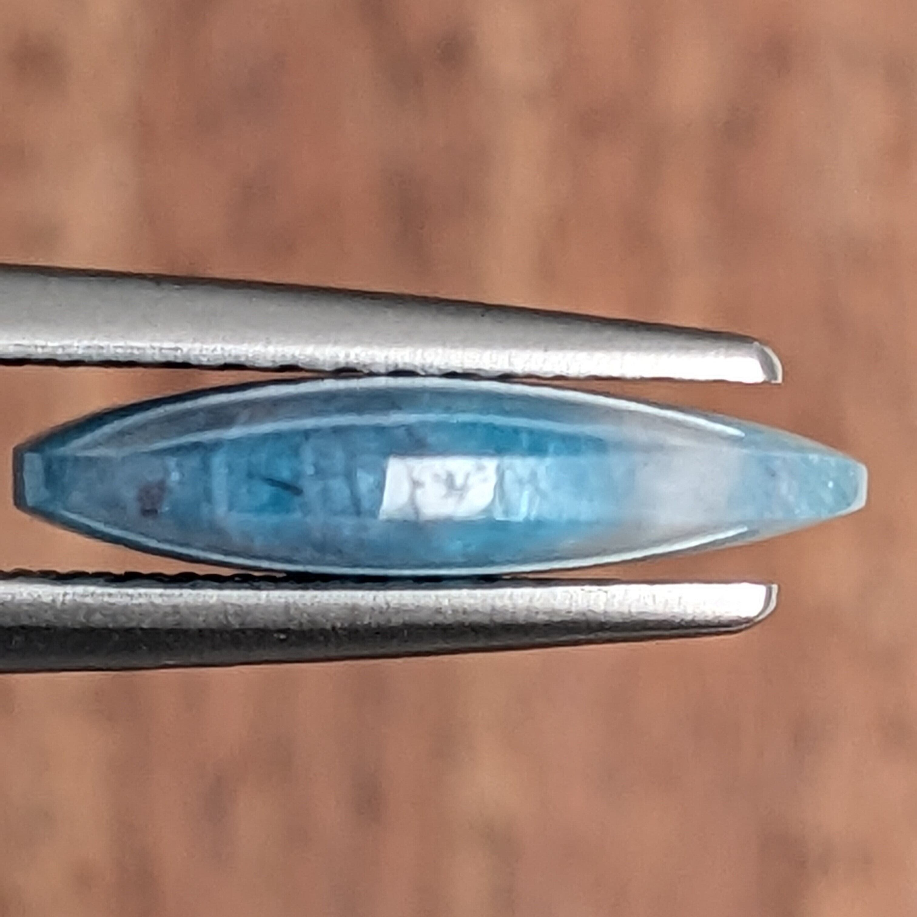 未だ解明されていない深海の藍色と、カラフルな魚たちが躍る浅瀬の鮮やかなマリンブルーとが共存しているような美しい1粒。光りに透かすと乳白色のクォーツ部分と透明感のあるパライバトルマリン部分のコントラストが際立ち、角度を変えてウットリといつまでも見つめてしまう美しさです。