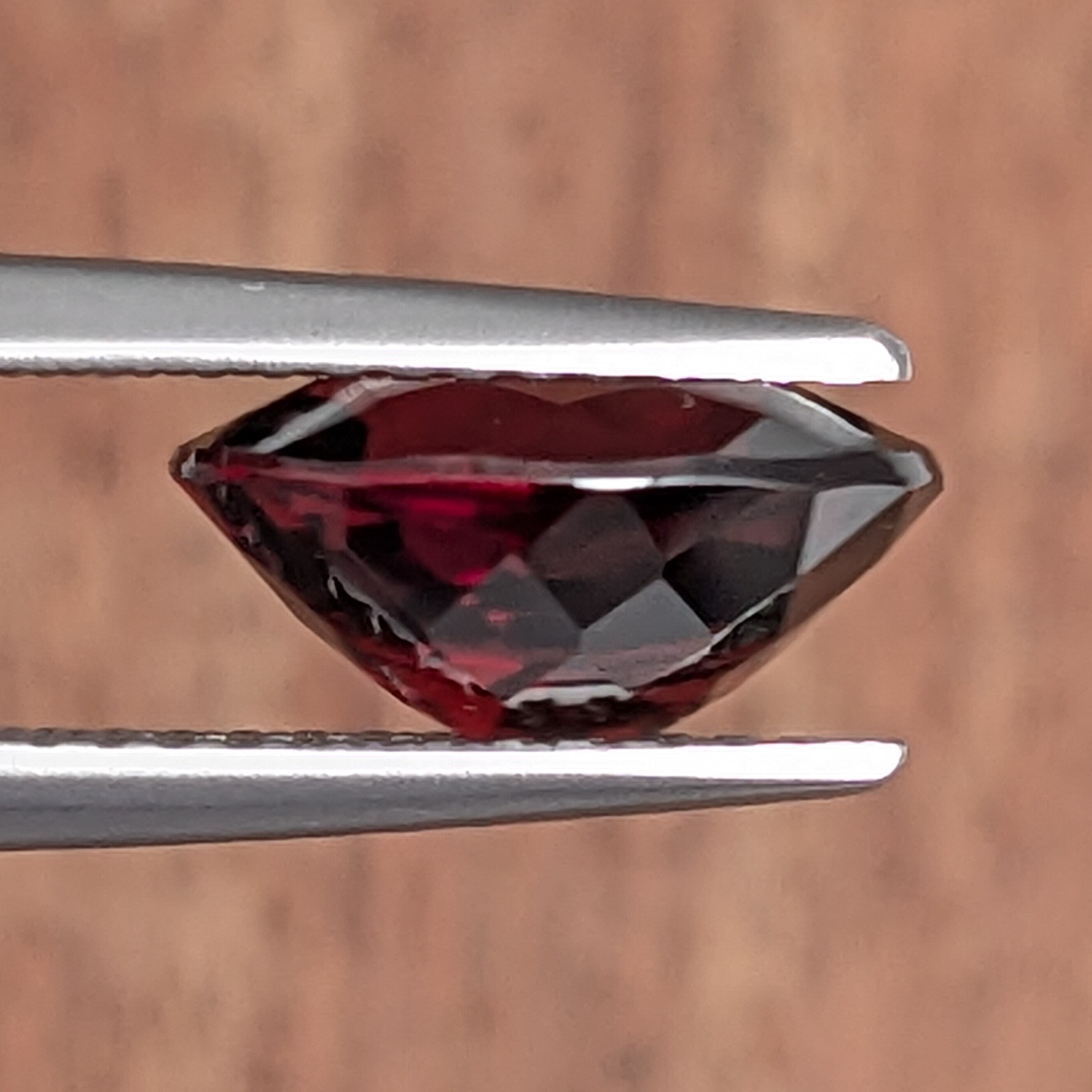 赤い宝石の王様はルビーのような印象がありますが、個人的にはガーネットが最強の赤い宝石だと感じます。どの角度からも揺らぎなく同じ色を呈し、硬度も十分。そしてその魅惑的な赤色は、地球の内部から湧き出るマグマのように躍動的な輝きです。内部では、ルチル・インクルージョンが煌めきます。